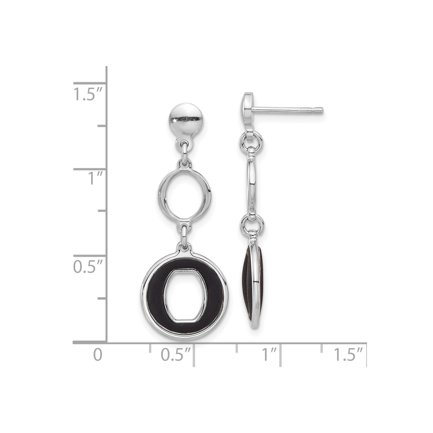Sterling Silver Dangle Earrings with Open Circle and Oval Link Design, Black Enamel Accents