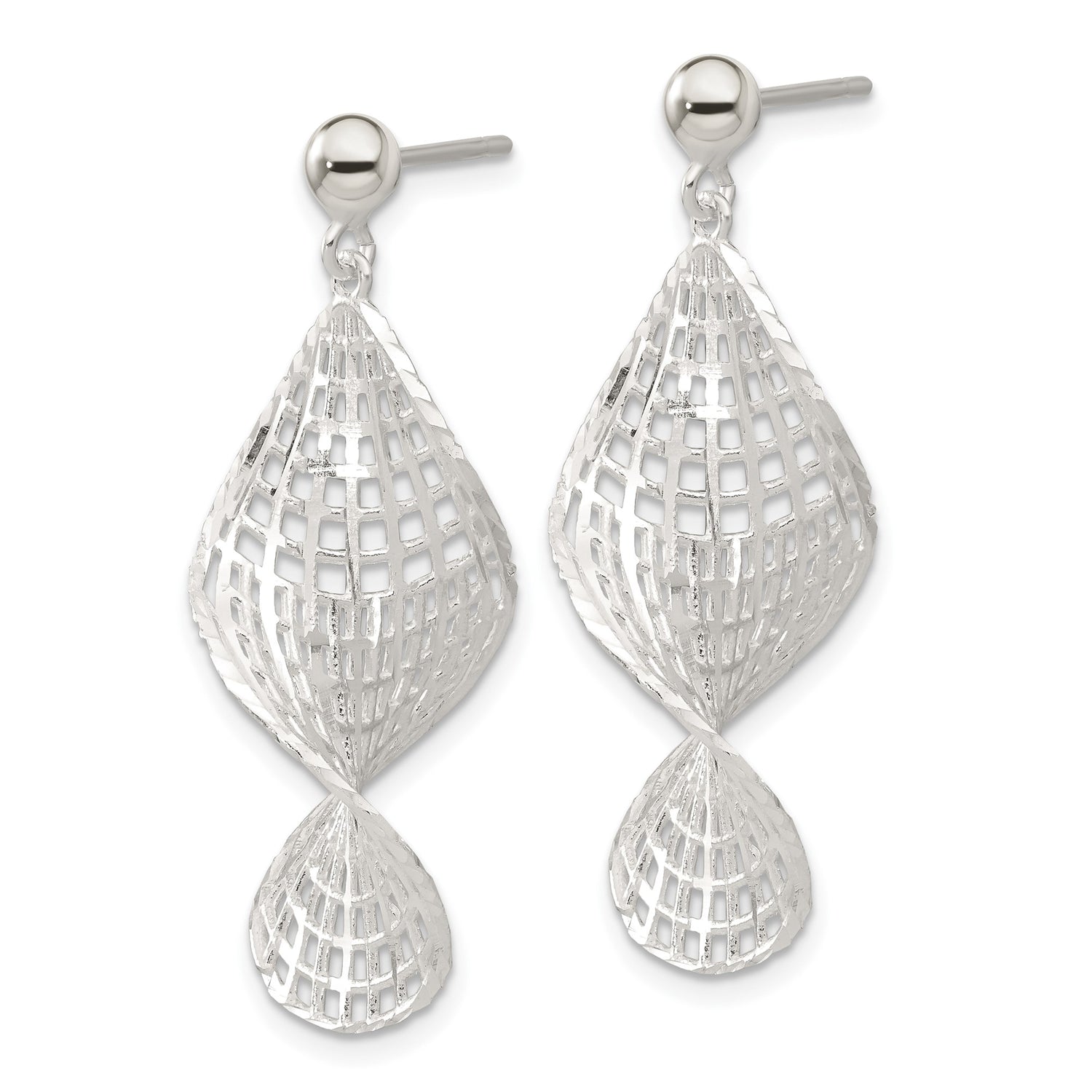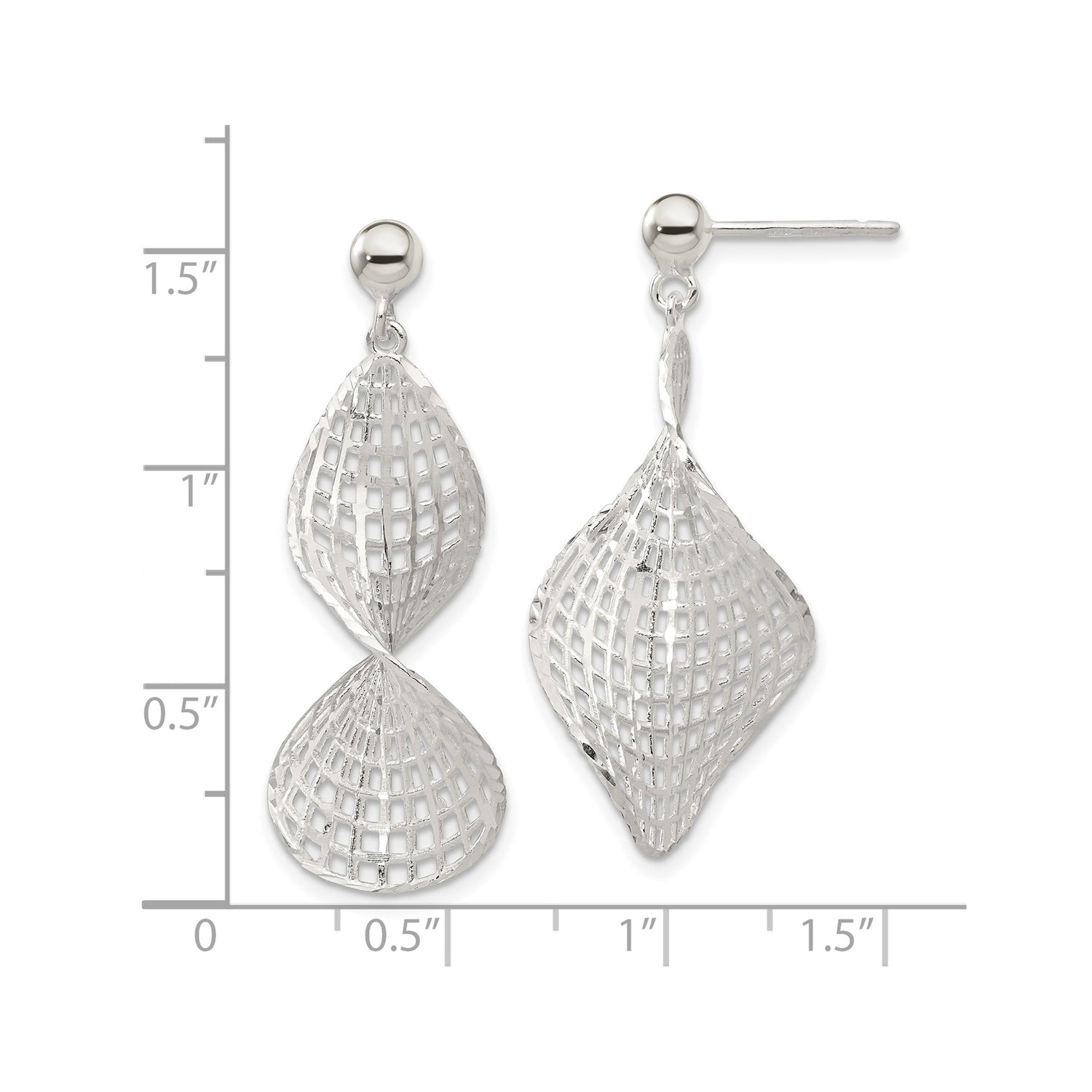 Sterling Silver Dangle Earrings with Open Lattice and Twisted Geometric Design