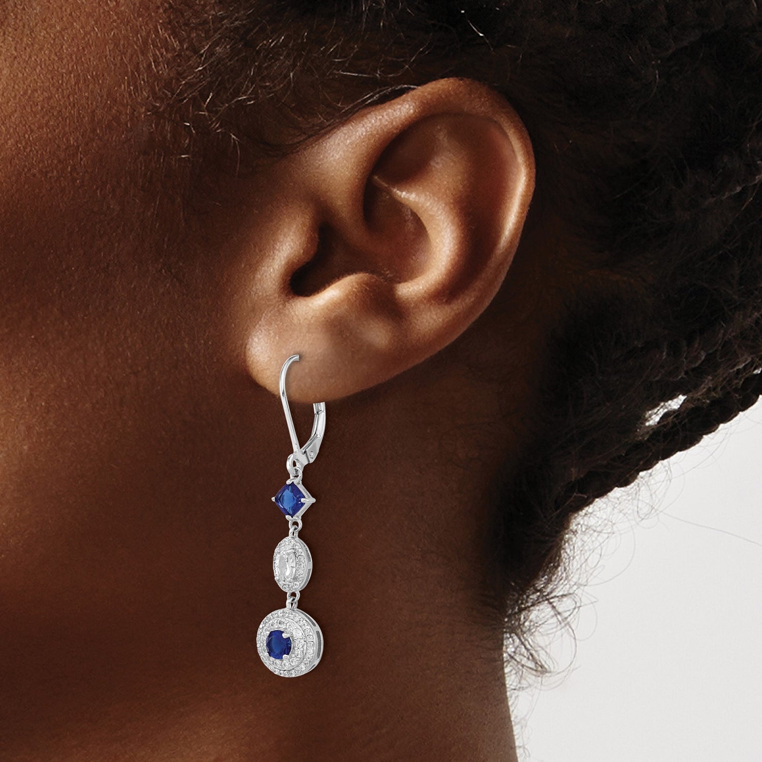 Expertly Crafted as High End Dangle Earrings, These Stylish Silver Earrings Offer Secure Leverback Earrings for Comfort and Peace of Mind. The Silver Dangle Drop Earrings Configuration Offers a Graceful Flow, While the White Cubic Zirconia Accents Provide a Subtle Yet Sparkling Contrast to the Deep Blue Gemstones.
