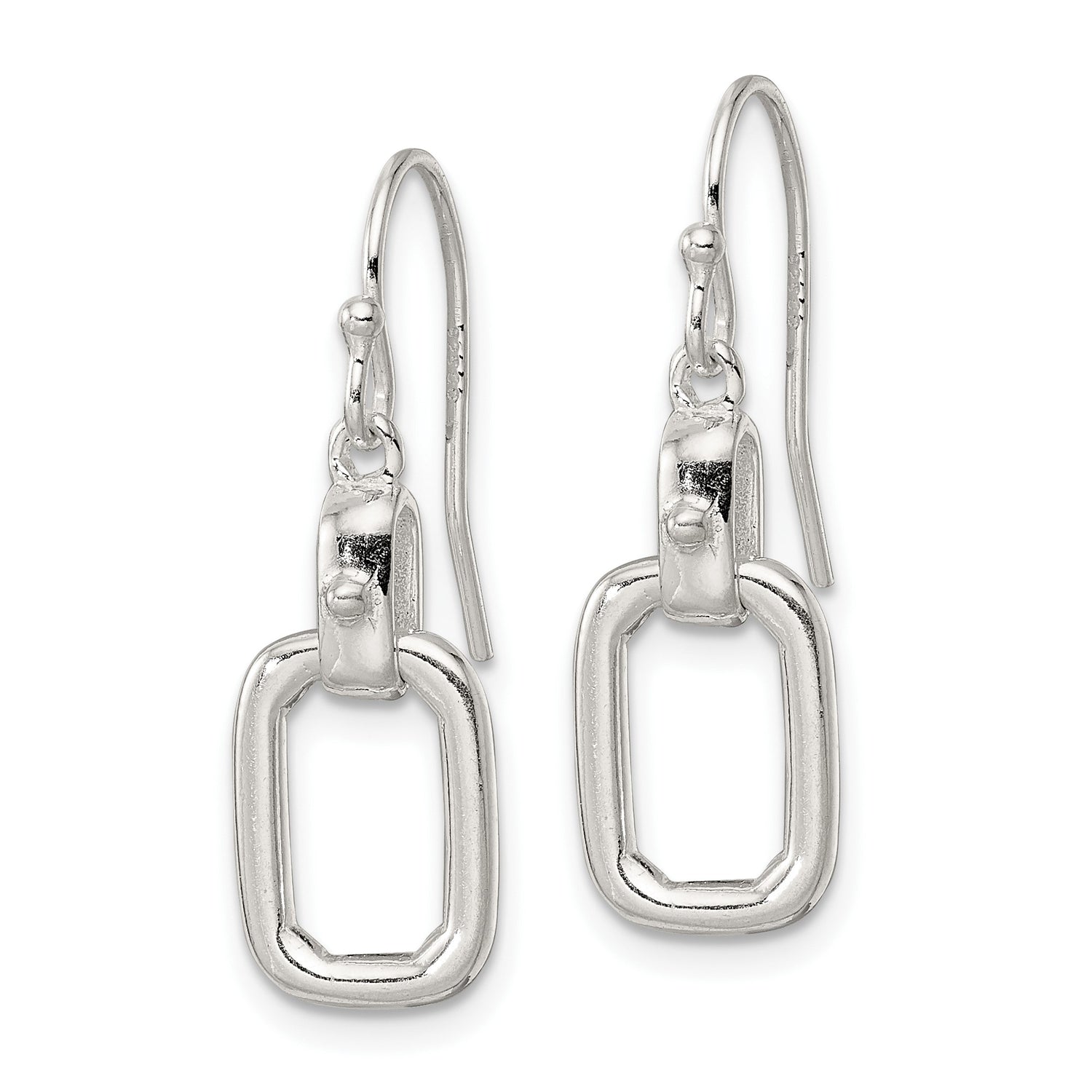 Sterling Silver Dangle Earrings with Polished Rectangle Links, Minimalist Geometric Drop Design