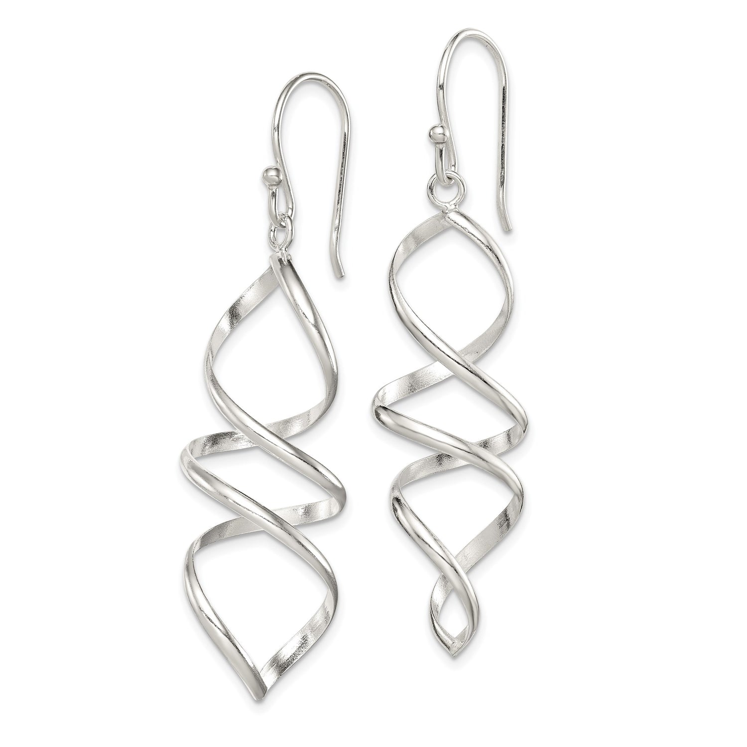Sterling Silver Dangle Earrings with Spiral Twist Design, Lightweight Modern Drop Style