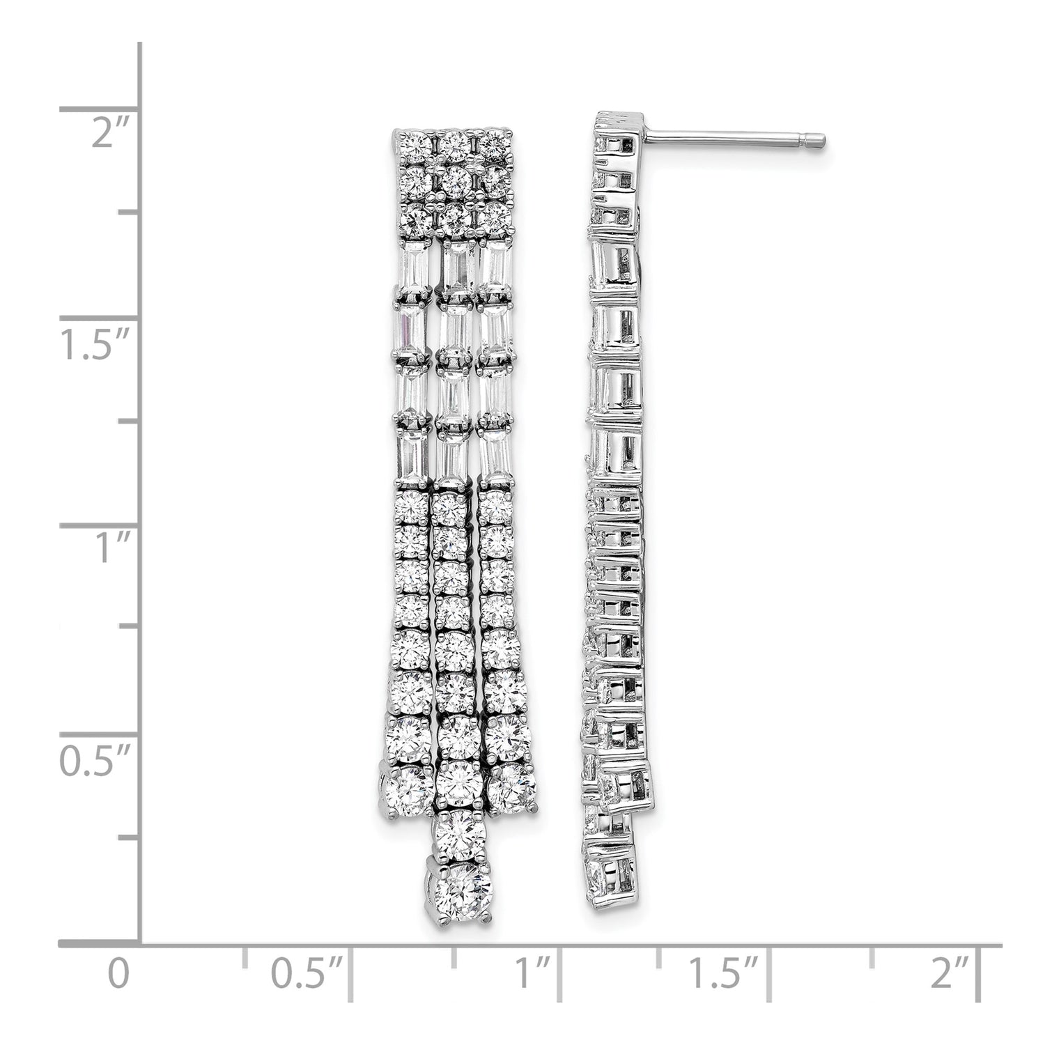 Sterling Silver Drop Earrings with Baguette and Round Cubic Zirconia, Chandelier Dangle Style