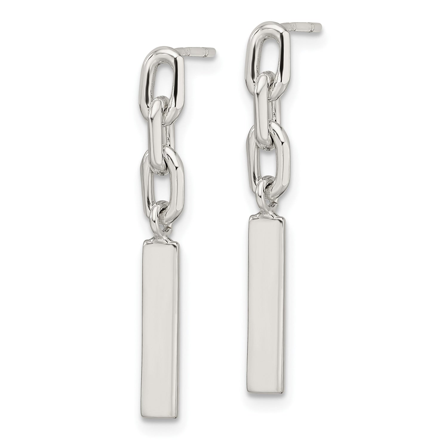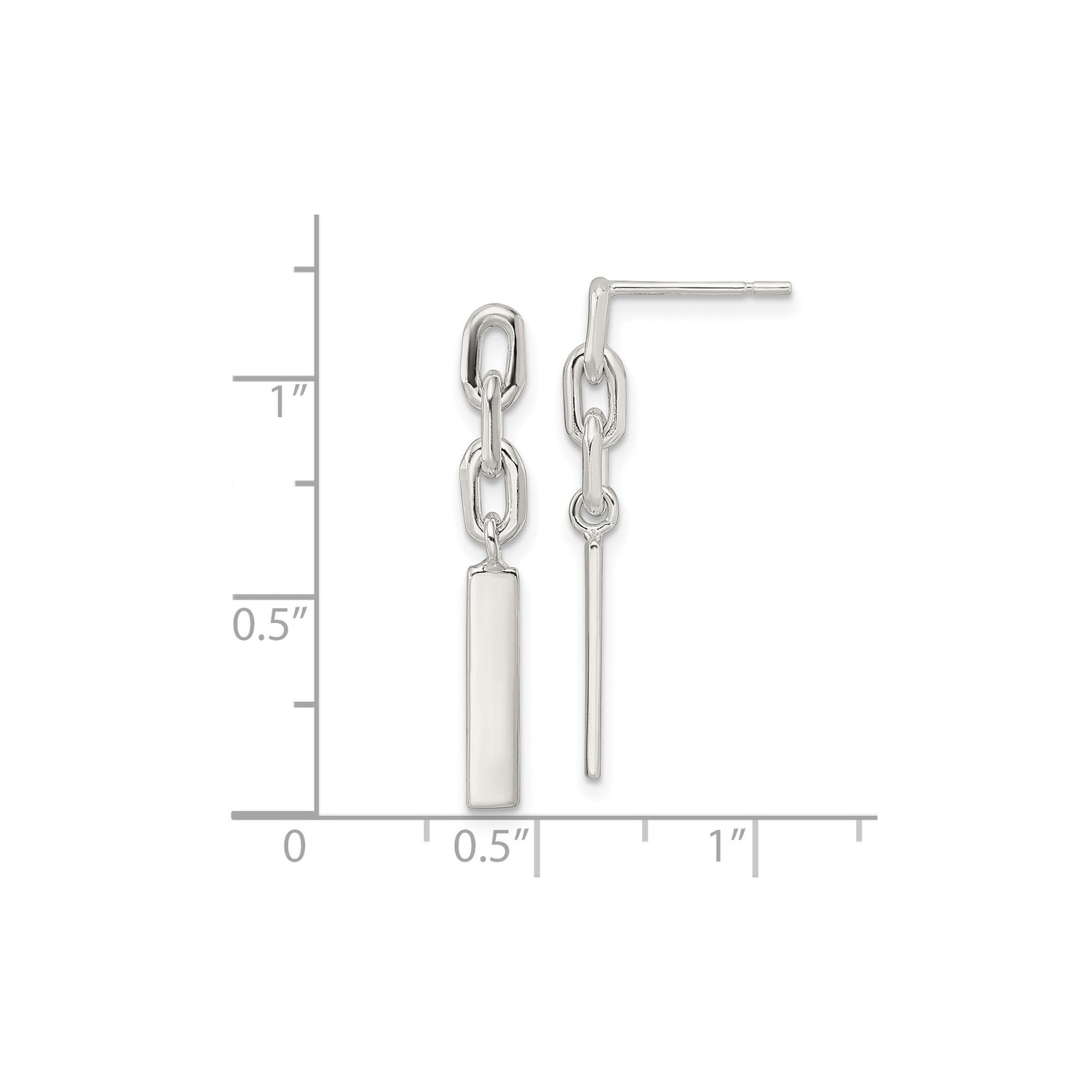 Sterling Silver Drop Earrings with Bar Dangles, Chain Link Design, Modern Minimalist Style