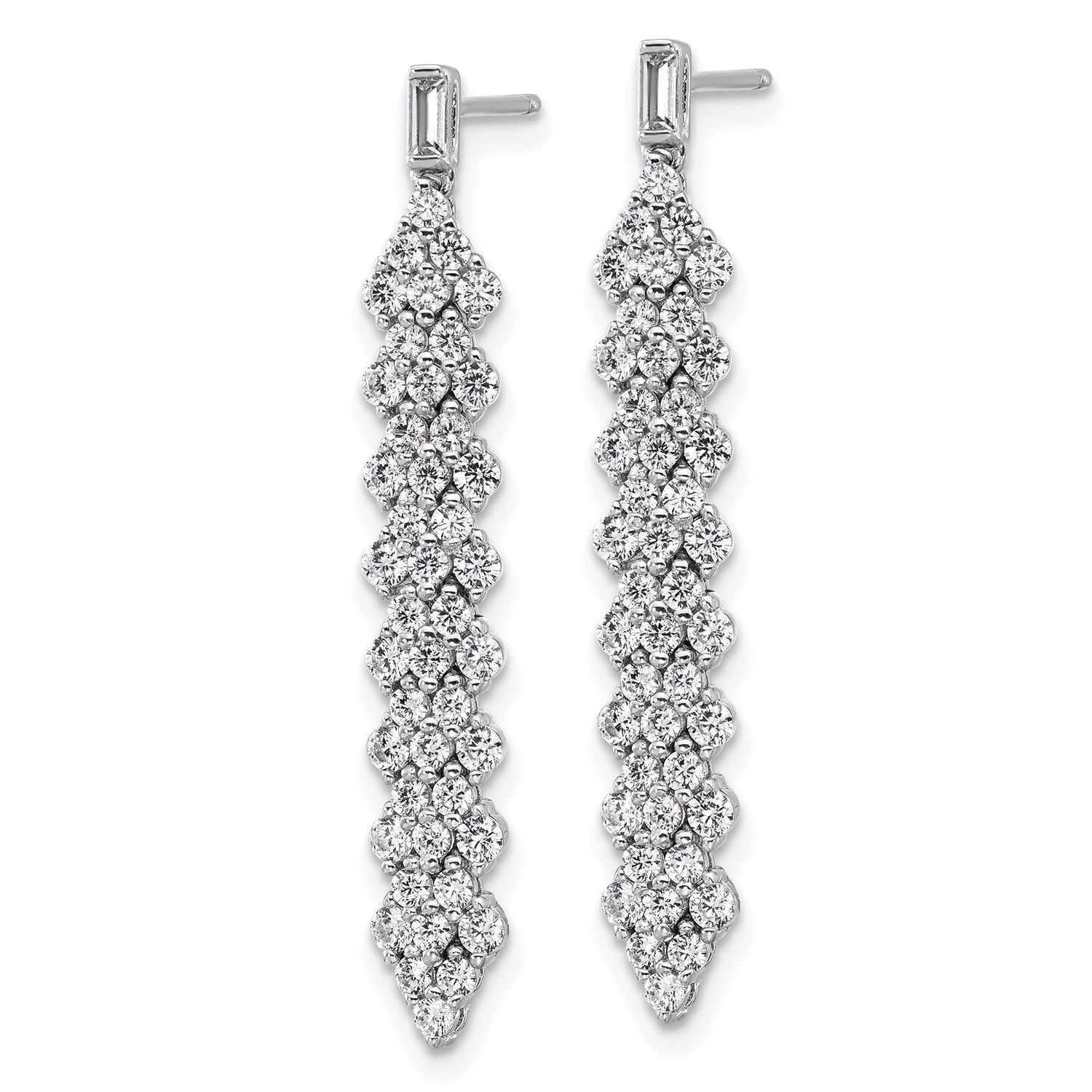 Sterling Silver Drop Earrings with Cascading Cubic Zirconia in Diamond Pattern