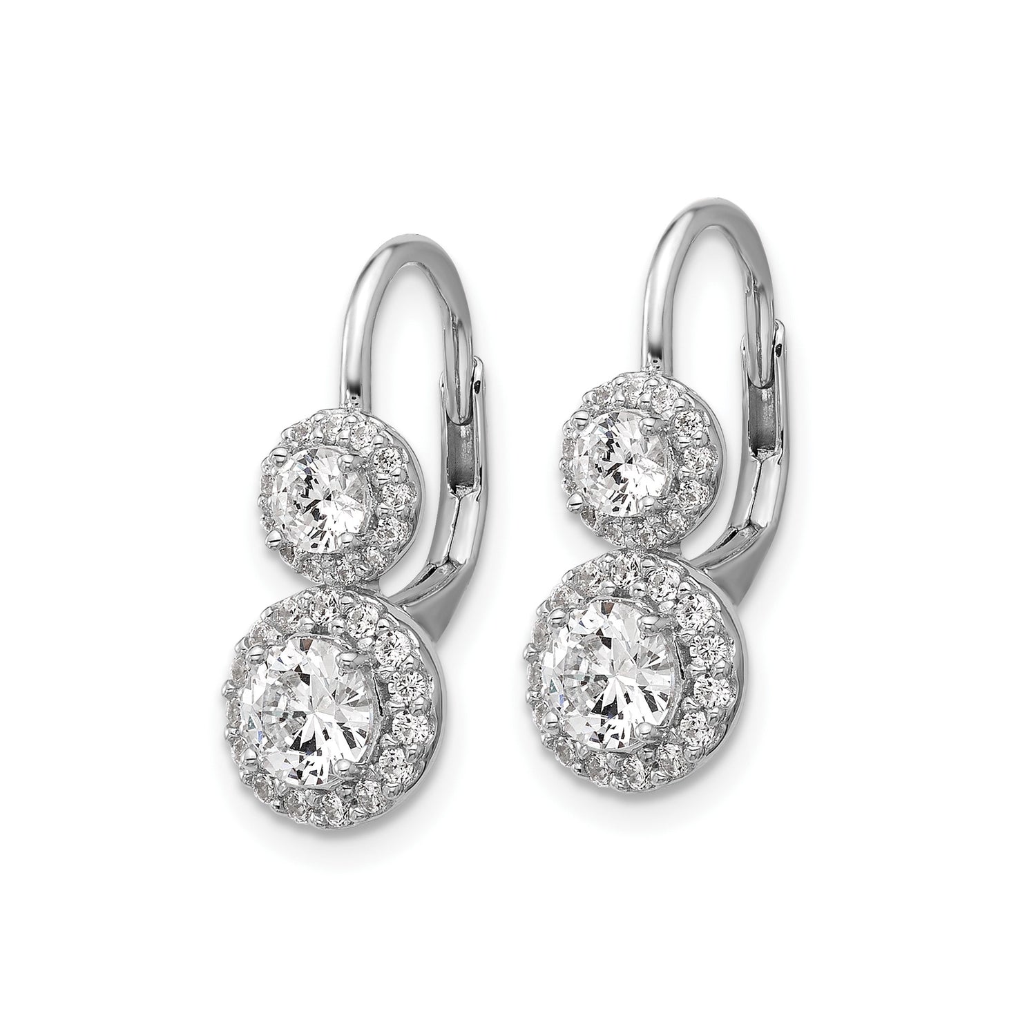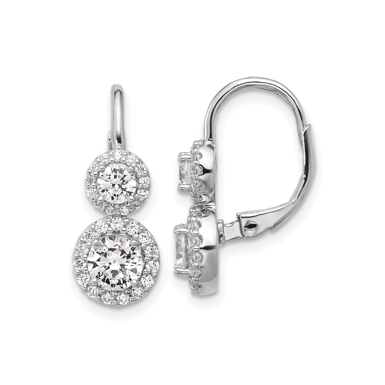 Sterling Silver Drop Earrings with Cubic Zirconia, Double Halo Leverback Design