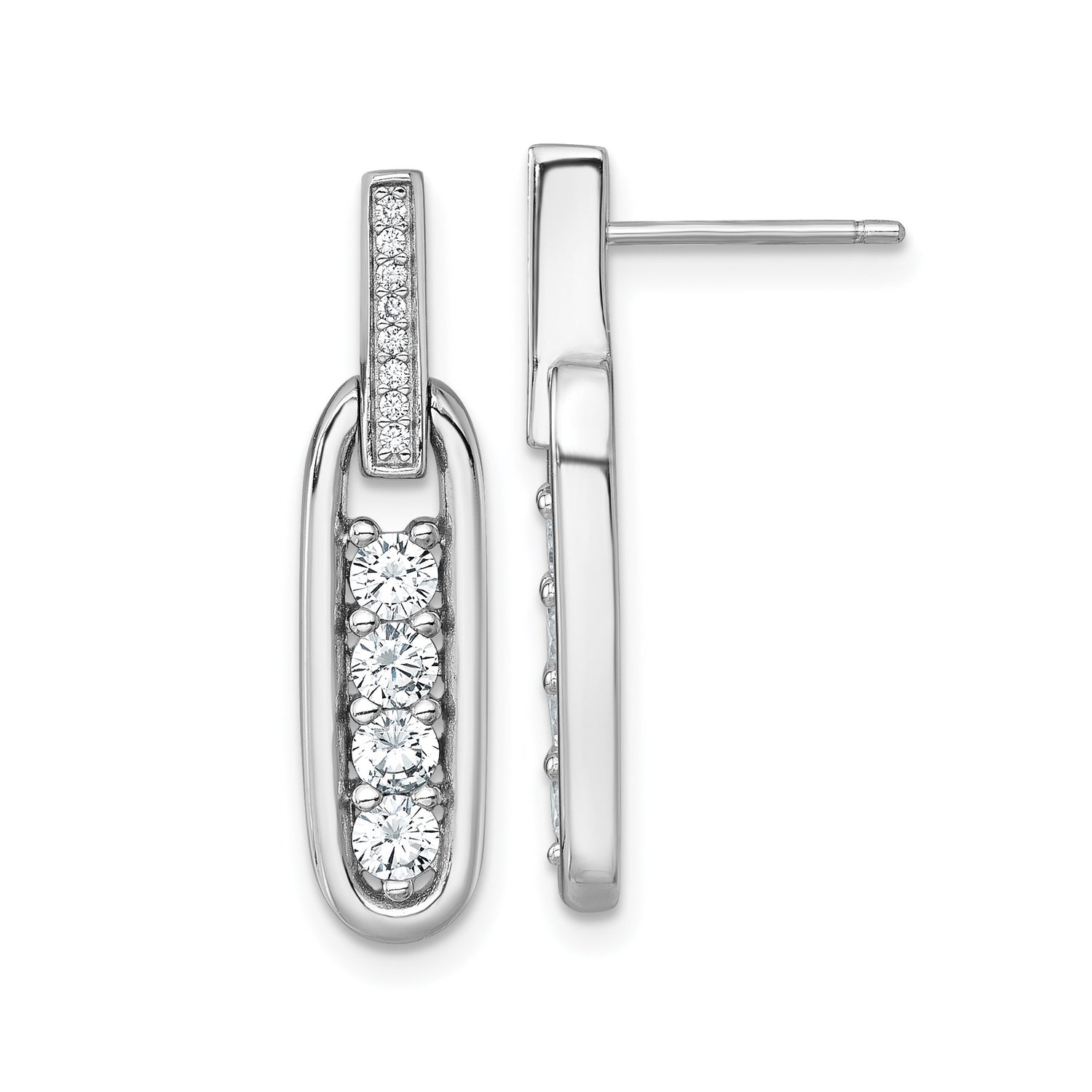 Sterling Silver Drop Earrings with Cubic Zirconia, Elongated Oval Dangle Design, Modern Formal Style