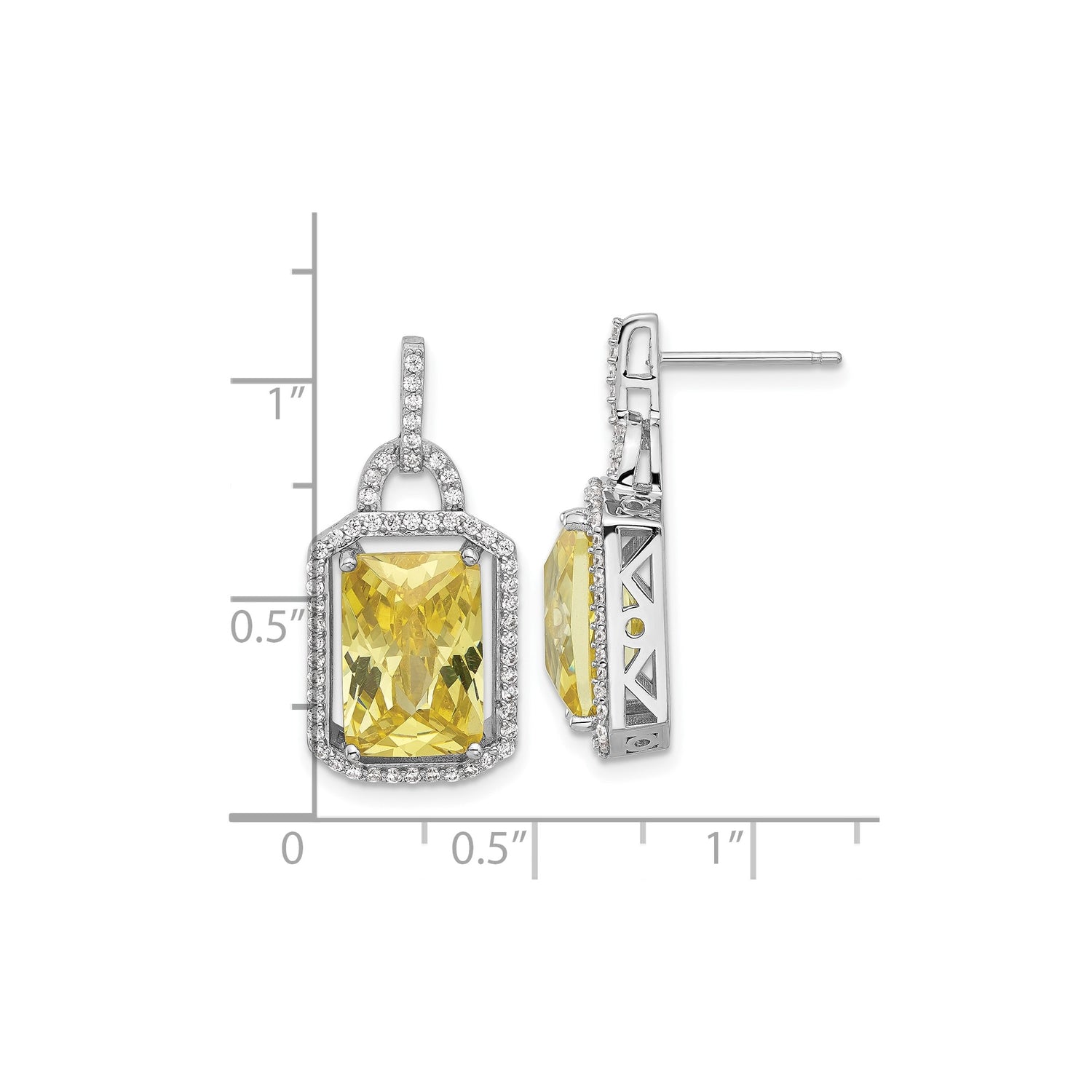 Sterling Silver Drop Earrings with Radiant Cut Yellow Cubic Zirconia and Geometric Side Design