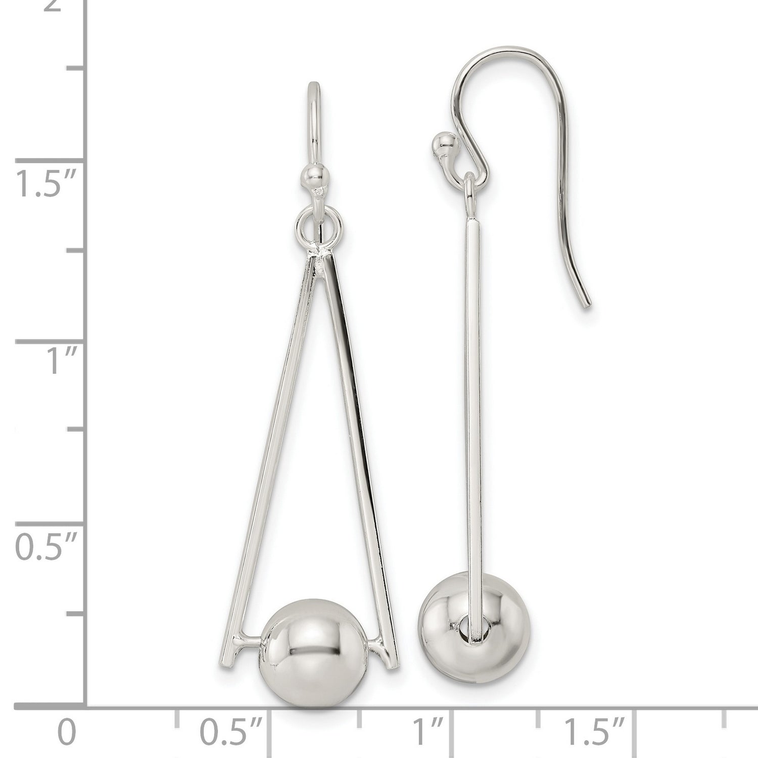 Sterling Silver Geometric Drop Earrings with Triangle and Sphere Design for Women