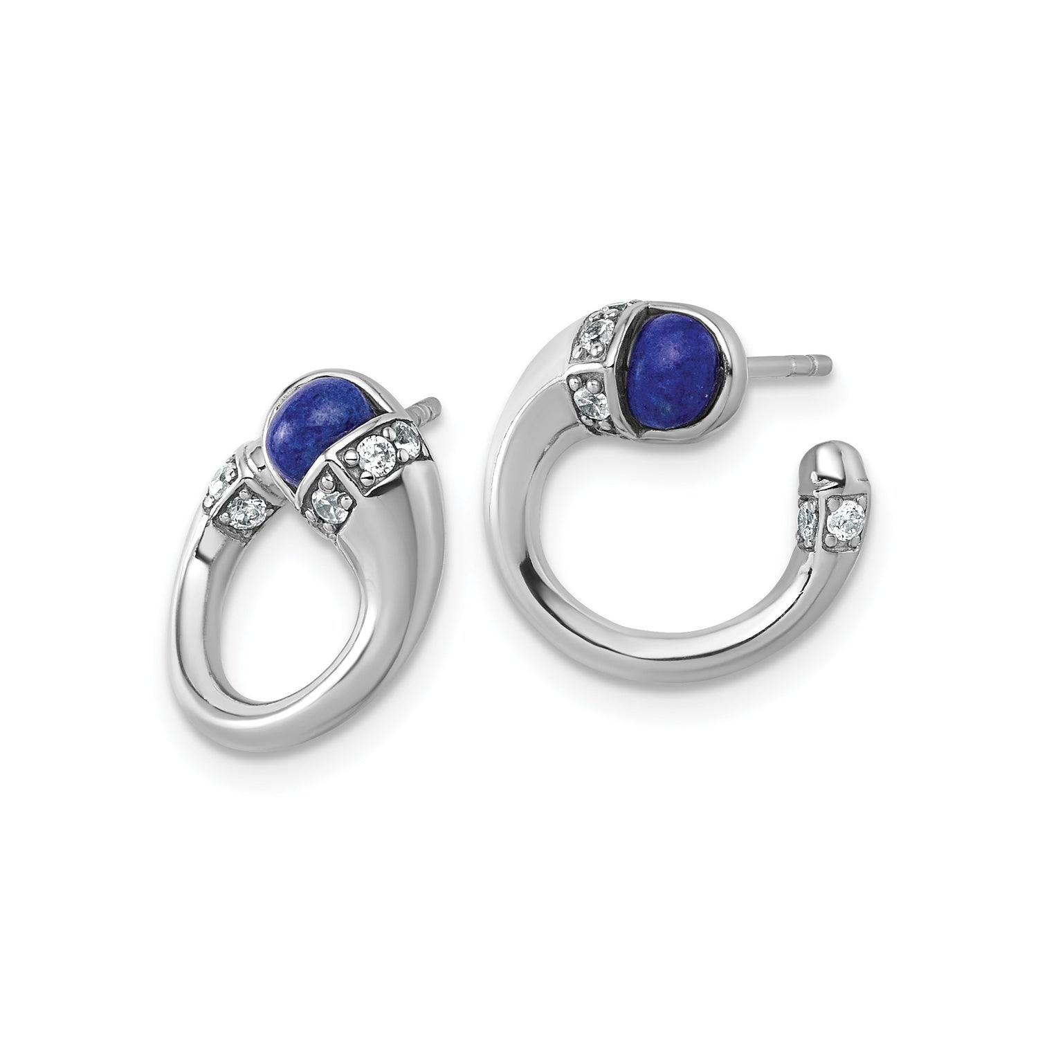 Sterling Silver Hoop Earrings with Lapis Inlay and Cubic Zirconia Accents, Modern Minimalist Design