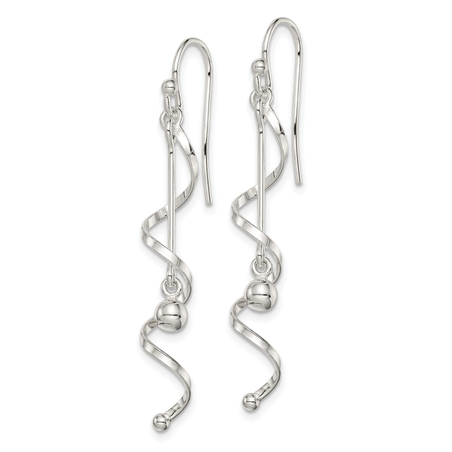 Sterling Silver Spiral Drop Earrings with Polished Bead, Modern Minimalist Dangle Design