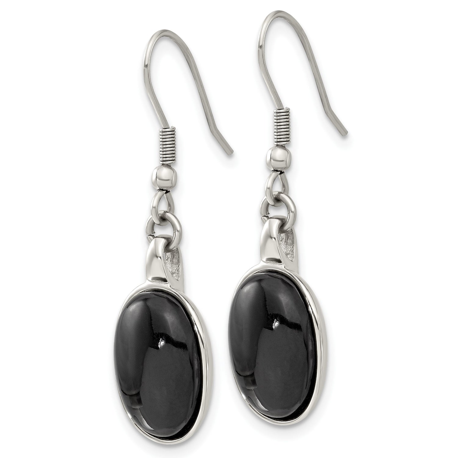 Bring Effortless Sophistication to Your Look with These Black Onyx Drop Earrings That Combine Modern Style with Time-Tested Elegance. Designed for the Contemporary Woman, These Stainless Earrings Are the Perfect Blend of Strong Materials and Sleek Design, Offering Both Durability and Refined Minimalism. Featuring Natural Onyx Jewelry Appeal, These Oval Stone Earrings Highlight a Smooth Bezel Setting and High Polish Finish That Reflect a Polished Professional Aesthetic Without Sacrificing Comfort or Personal Expression.
