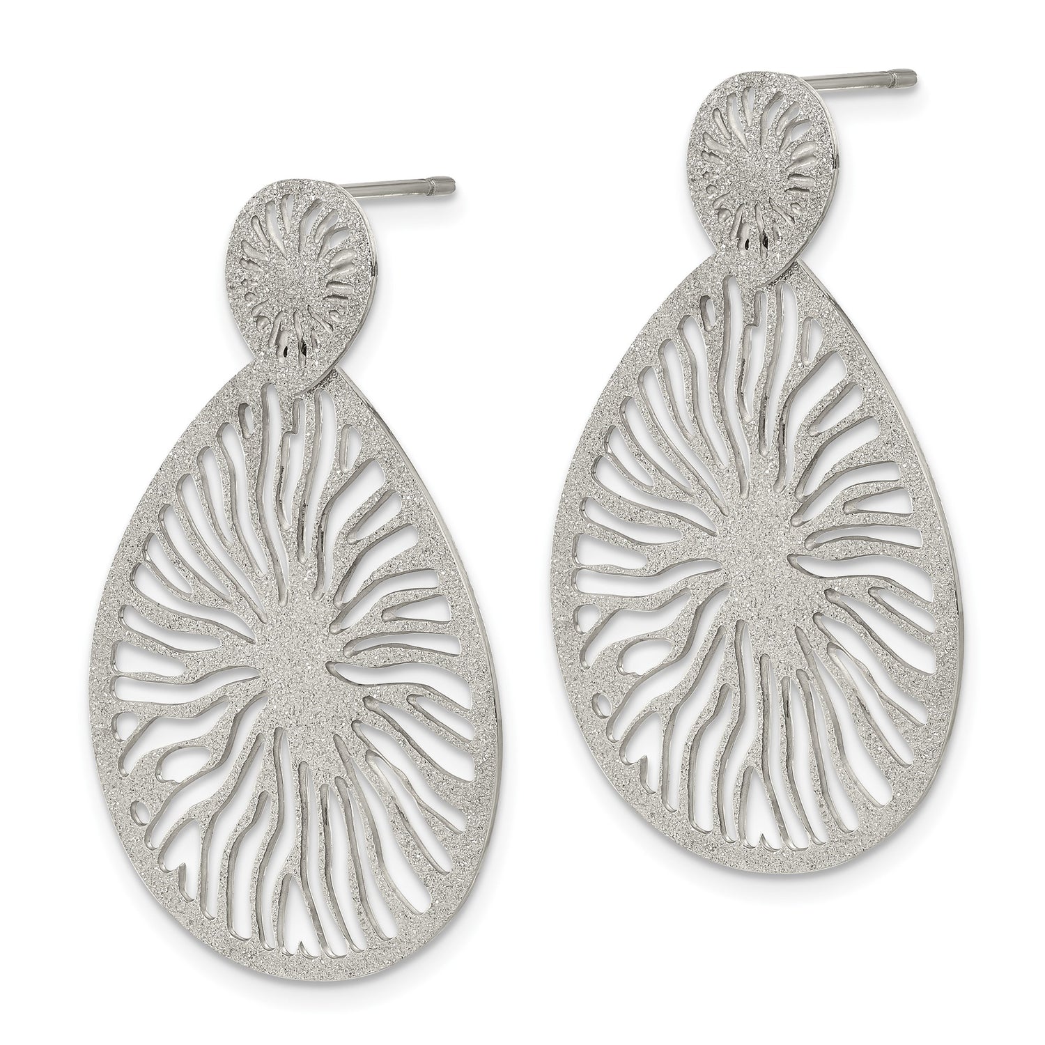 Stainless Steel Dangle Earrings, Teardrop Sunburst Cutout with Glitter Textured Finish