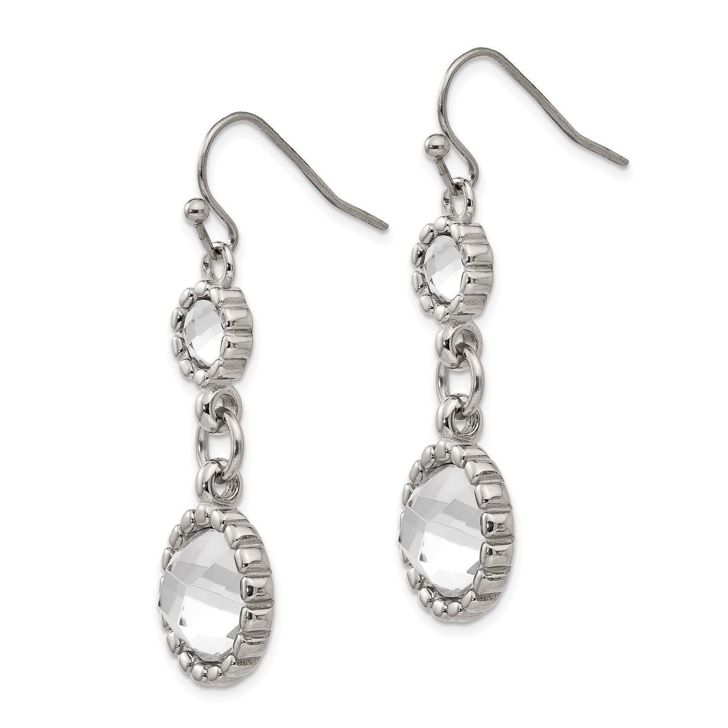 Stainless Steel Dangle Earrings with Clear Glass Crystals, Floral Edging, Lightweight Design