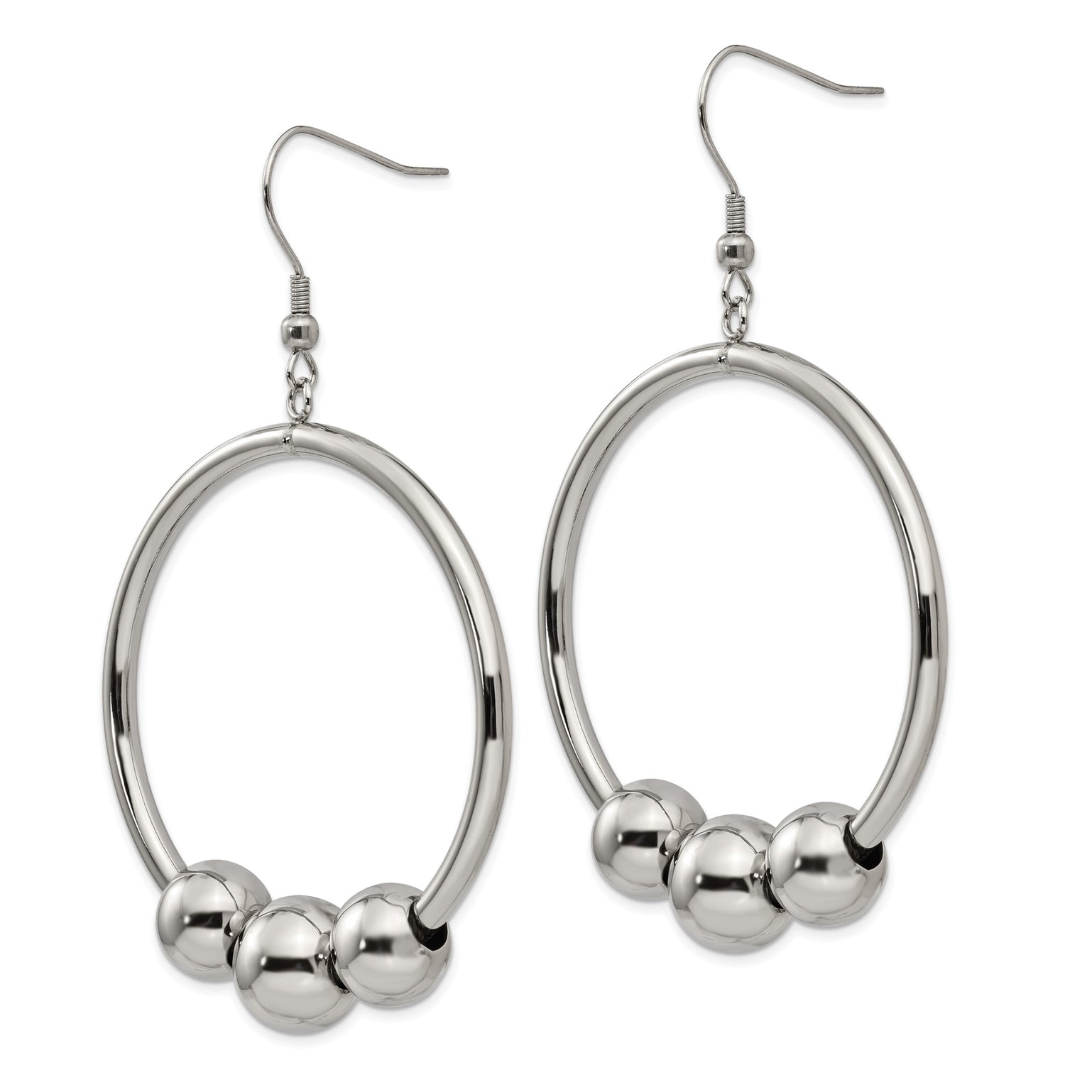 Elevate Your Jewelry Collection With These Contemporary Stainless Steel Hoop Earrings That Merge Modern Appeal With Everyday Comfort. Designed In A Striking Modern Open Circle Design, The Sleek Silhouette Enhances Any Ensemble From Casual Outings To Evening Events. Featuring A Triple Metal Bead Design Suspended Within Open Circle Hoop Earrings, These Lightweight Polished Steel Hoops Offer A Refined Look Without Being Overstated.