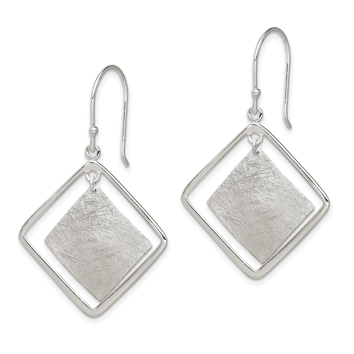 Sterling Silver Dangle Earrings with Brushed Interior and Polished Double Square Design