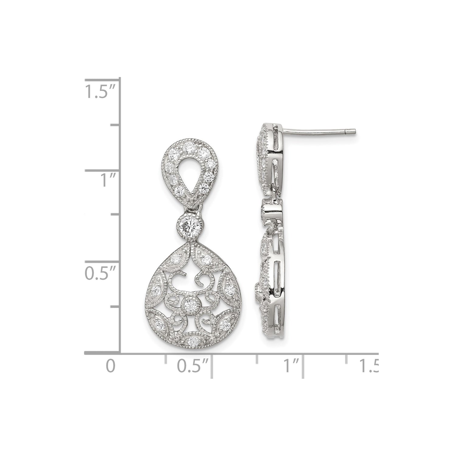 Sterling Silver Dangle Earrings with Cubic Zirconia, Teardrop Filigree, Vintage Style Bridal Jewelry