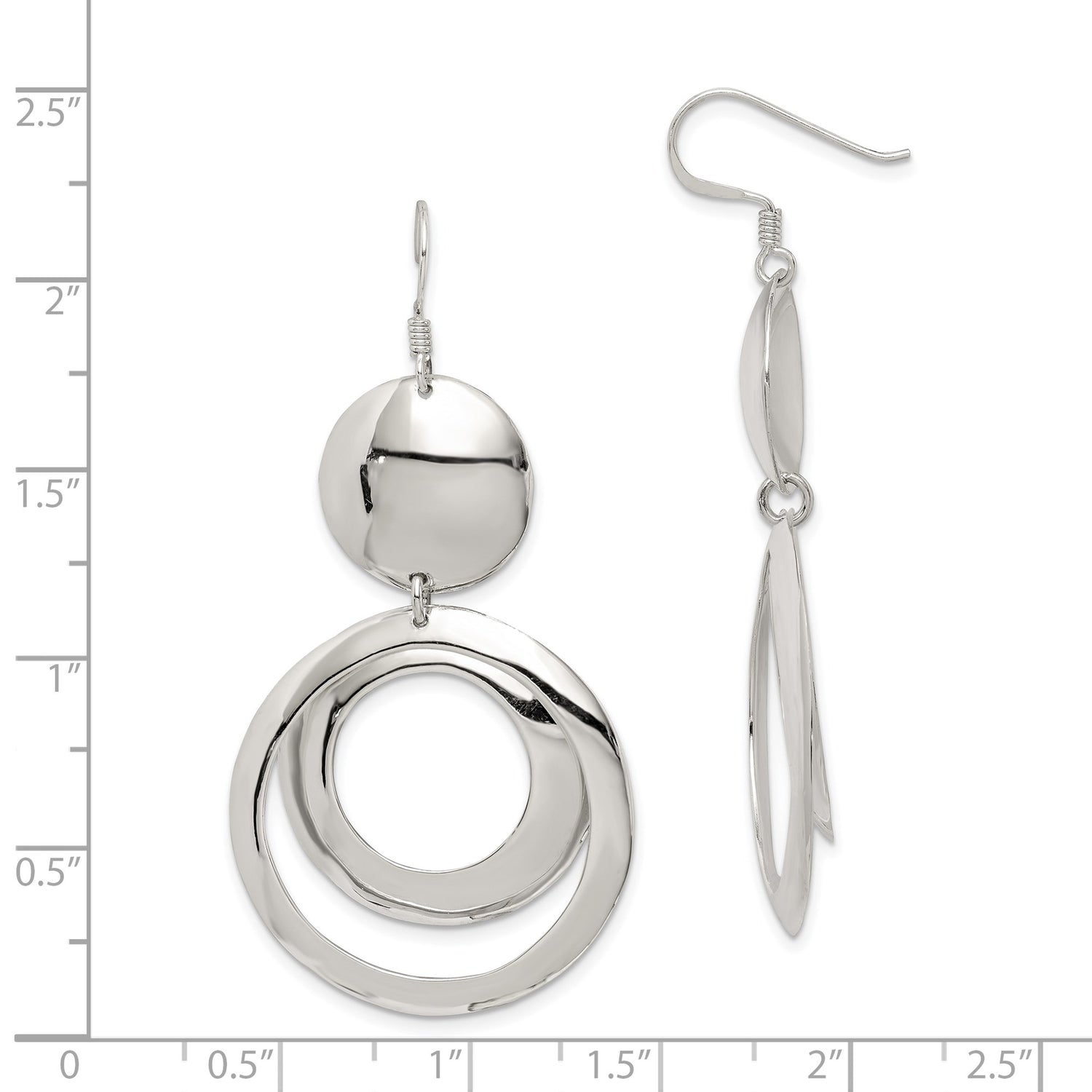 Sterling Silver Dangle Earrings with Open Circles and Disc Design, Modern Minimalist Style