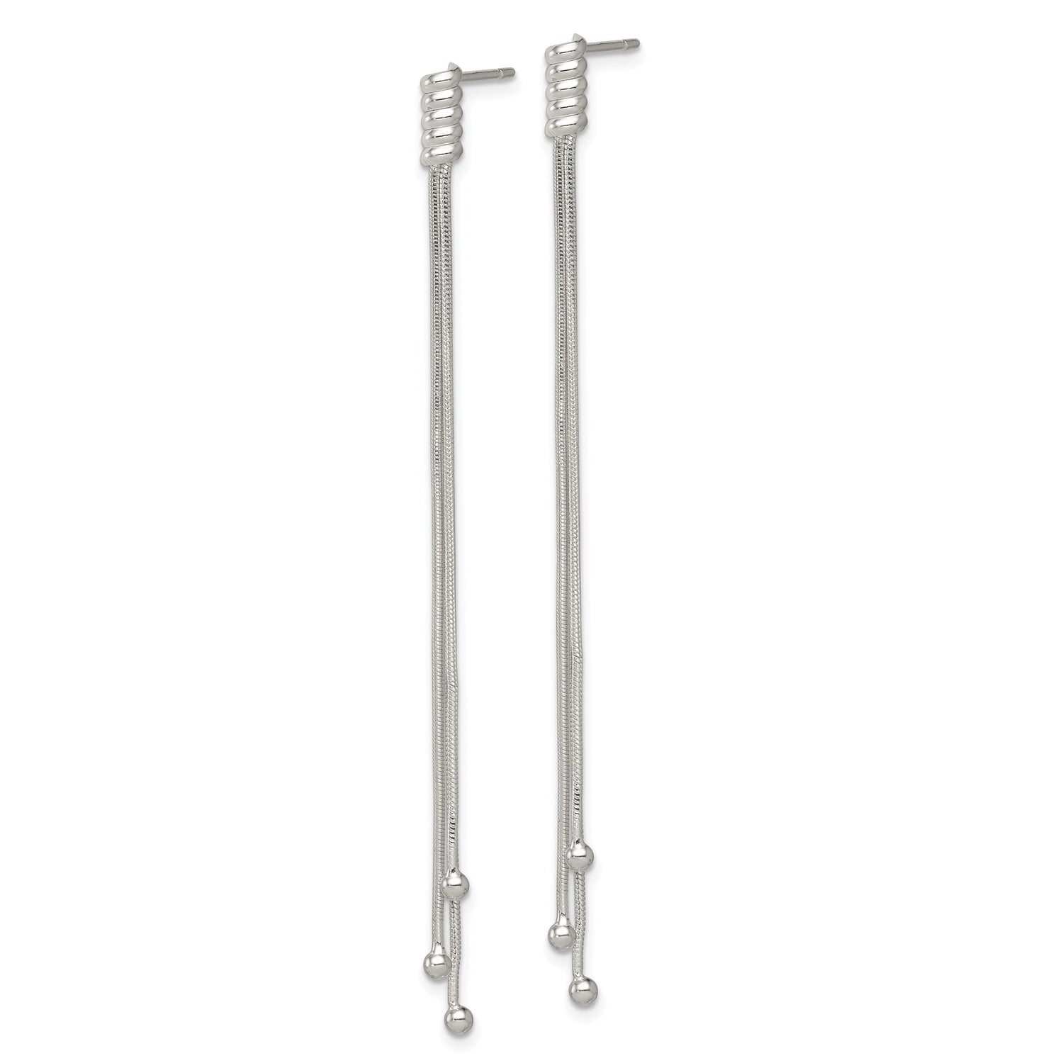 Sterling Silver Dangle Earrings with Snake Chain Strands and Polished Ball Ends
