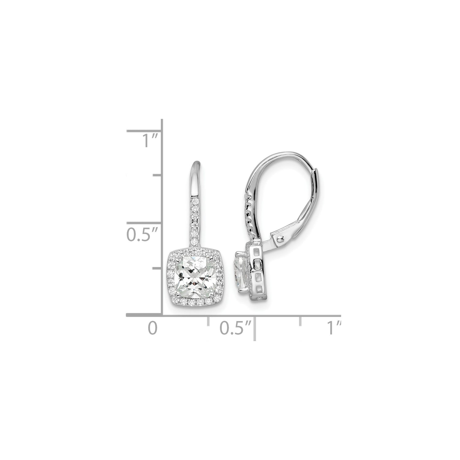 Sterling Silver Drop Earrings with Cushion Cut Cubic Zirconia and Halo Accents