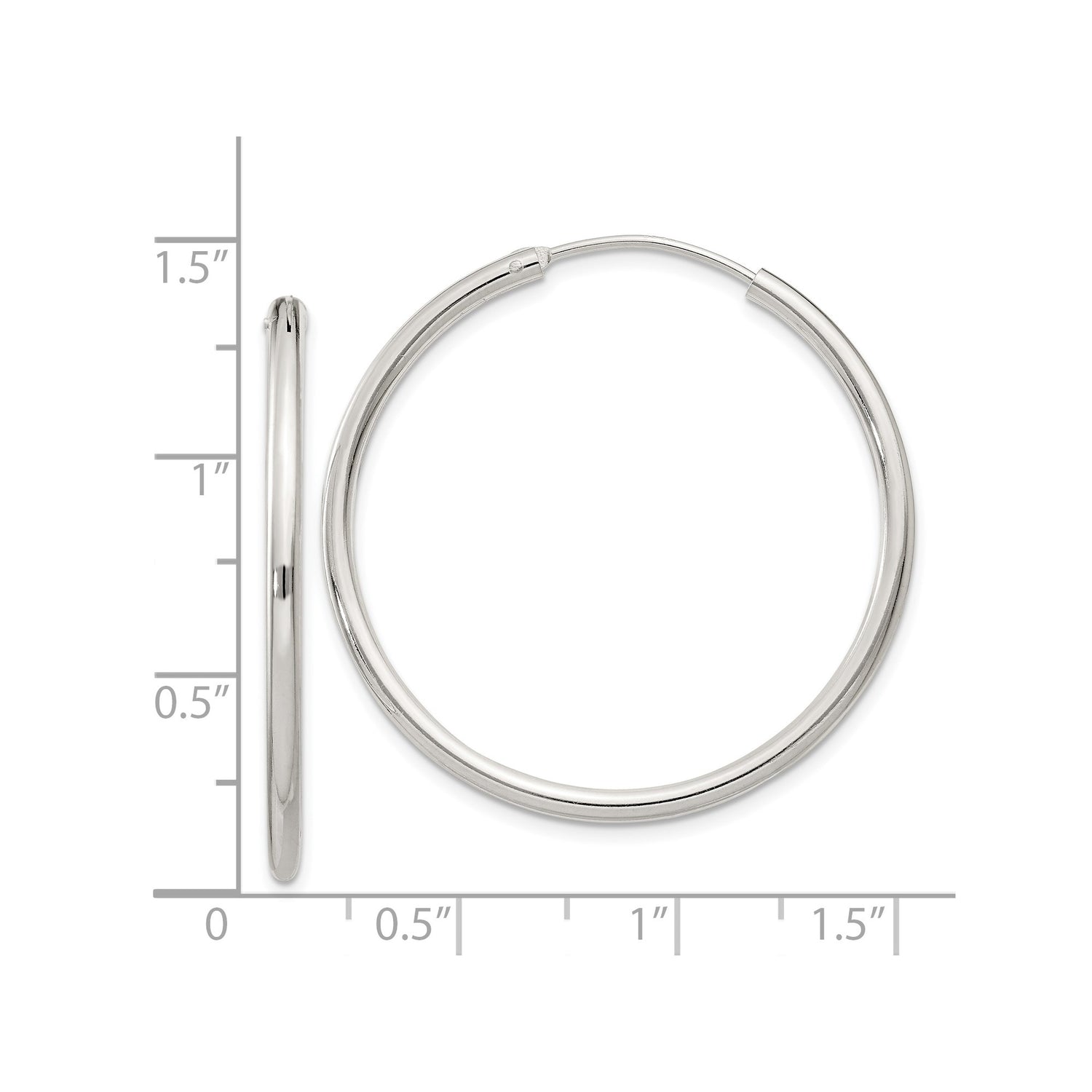 Sterling Silver Hoop Earrings, 2mm Round Endless Design with Polished Finish, Minimalist Style