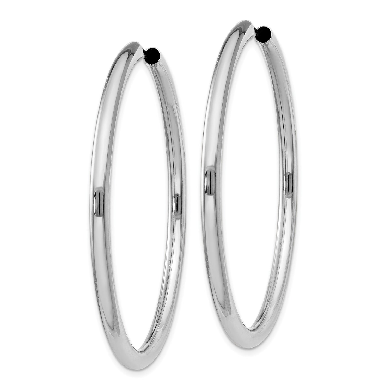 Sterling Silver Hoop Earrings, Rhodium Plated Round Tube Design, Classic Minimalist Style