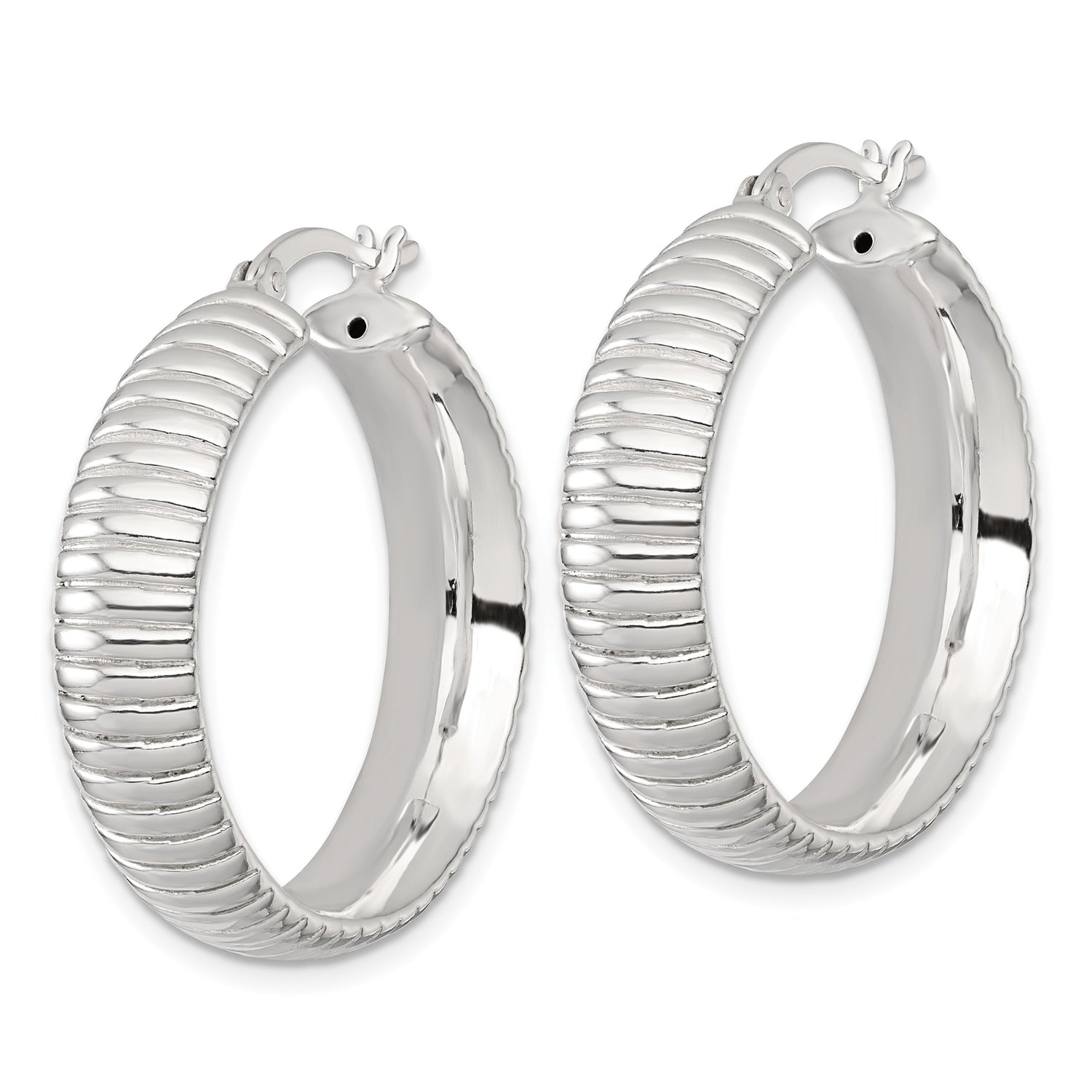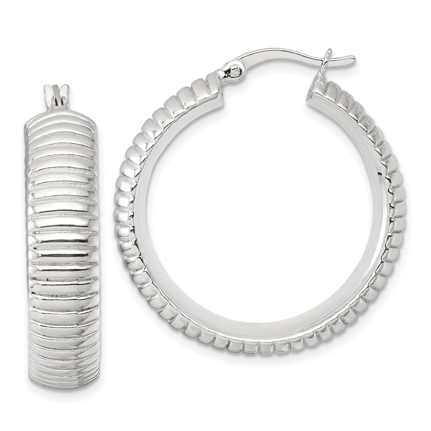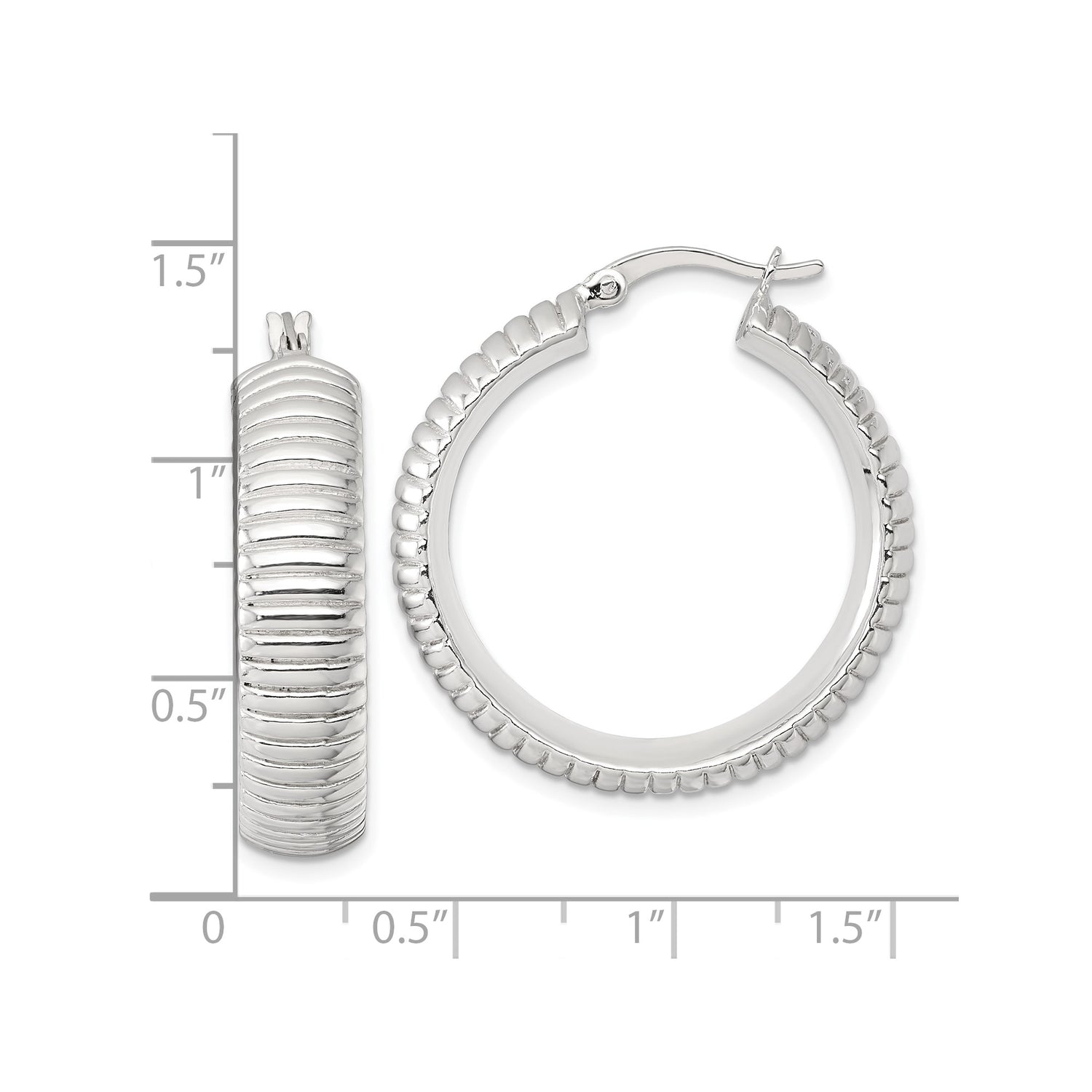 Sterling Silver Hoop Earrings, Ribbed Textured Lightweight Round Design for Women