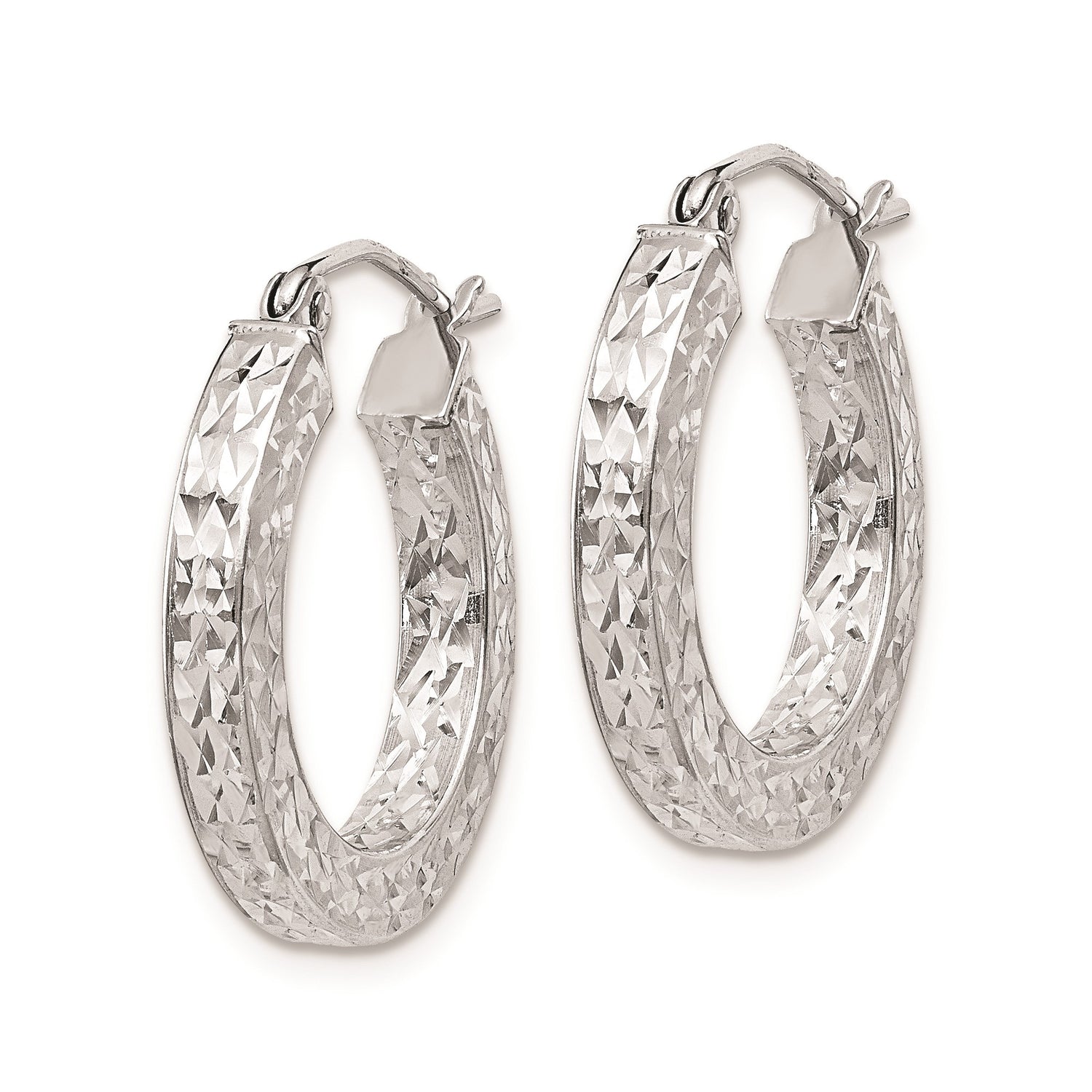 Whether You Are Searching for Sleek Rhodium Plated Hoops or Sparkling Silver Hoop Earrings That Elevate Your Ensemble, These Textured High Polish Hoops Are a Prime Example of Elegant Women's Silver Hoops That Balance Delicacy and Strength.