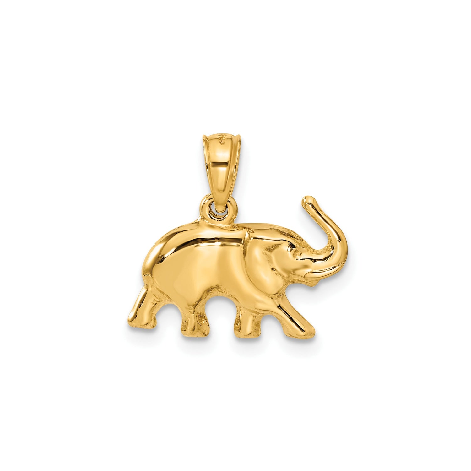 14k Yellow Gold Elephant Pendant with Polished Finish and Raised Trunk Design