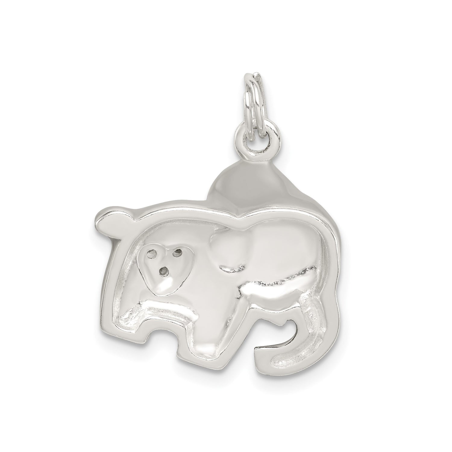 Sterling Silver Elephant Pendant with Cubic Zirconia and Heart Detail