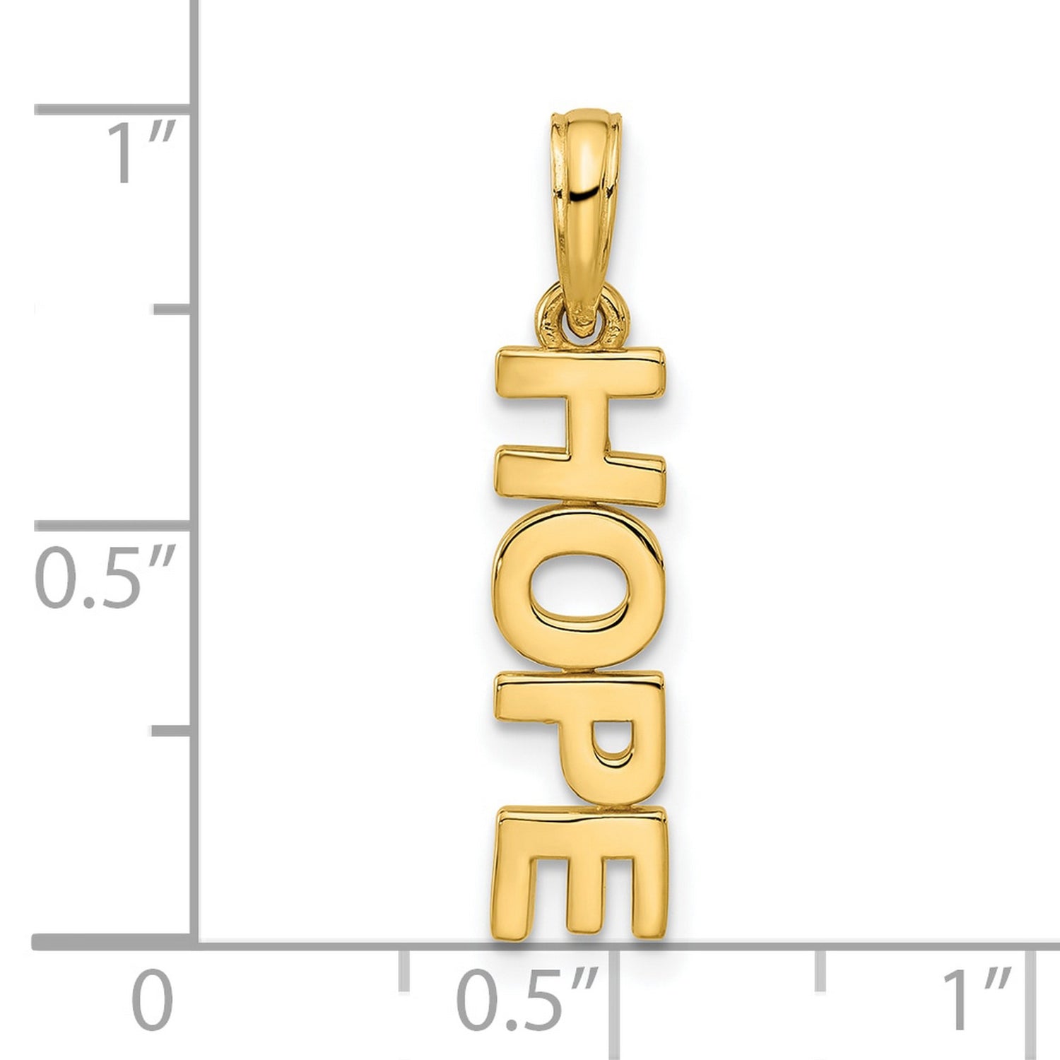 14k Yellow Gold Hope Pendant, Bold Block Letter Design, Spiritual Symbol for Strength and Faith