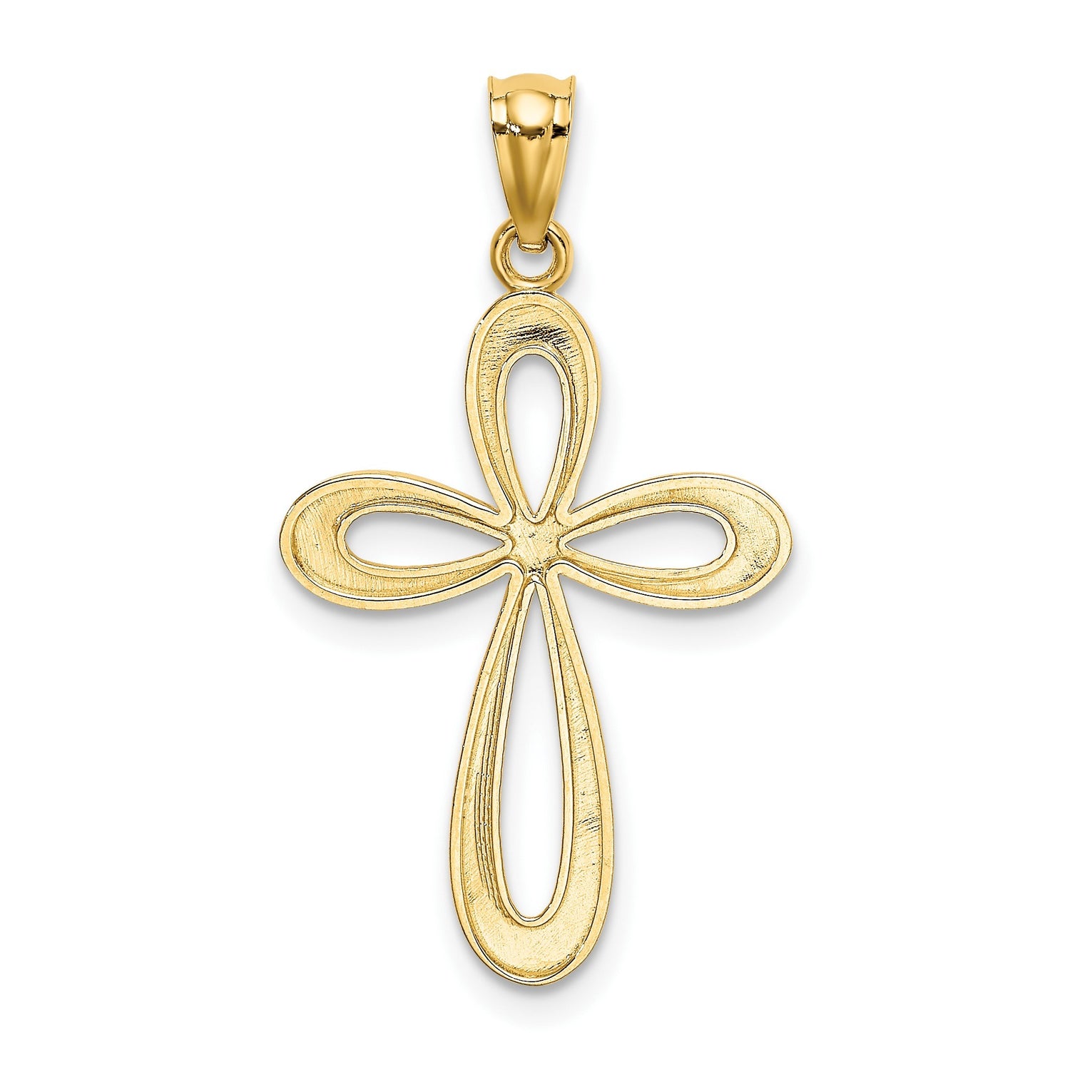 14k Yellow Gold Cross Pendant, Modern Open Ribbon Design, Polished Latin Style