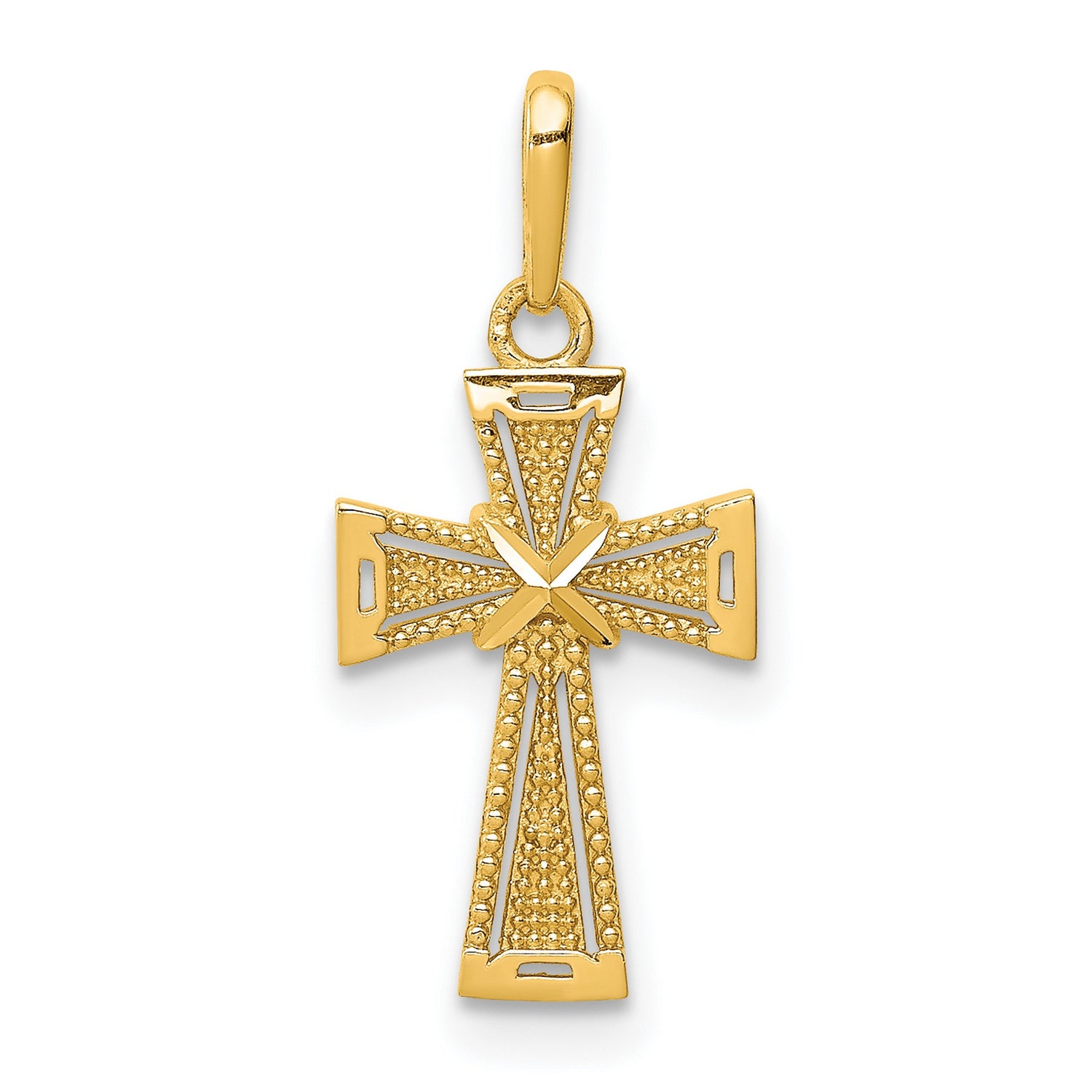 14k Yellow Gold Cross Pendant with Starburst Design, Textured Religious Charm for Men or Women