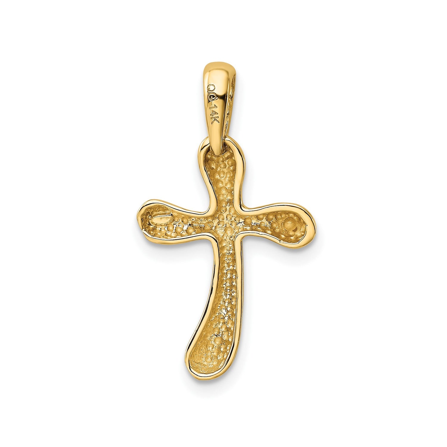 Latin Cross With Curved Bottom Charm Pendant in Real 14k Yellow Gold