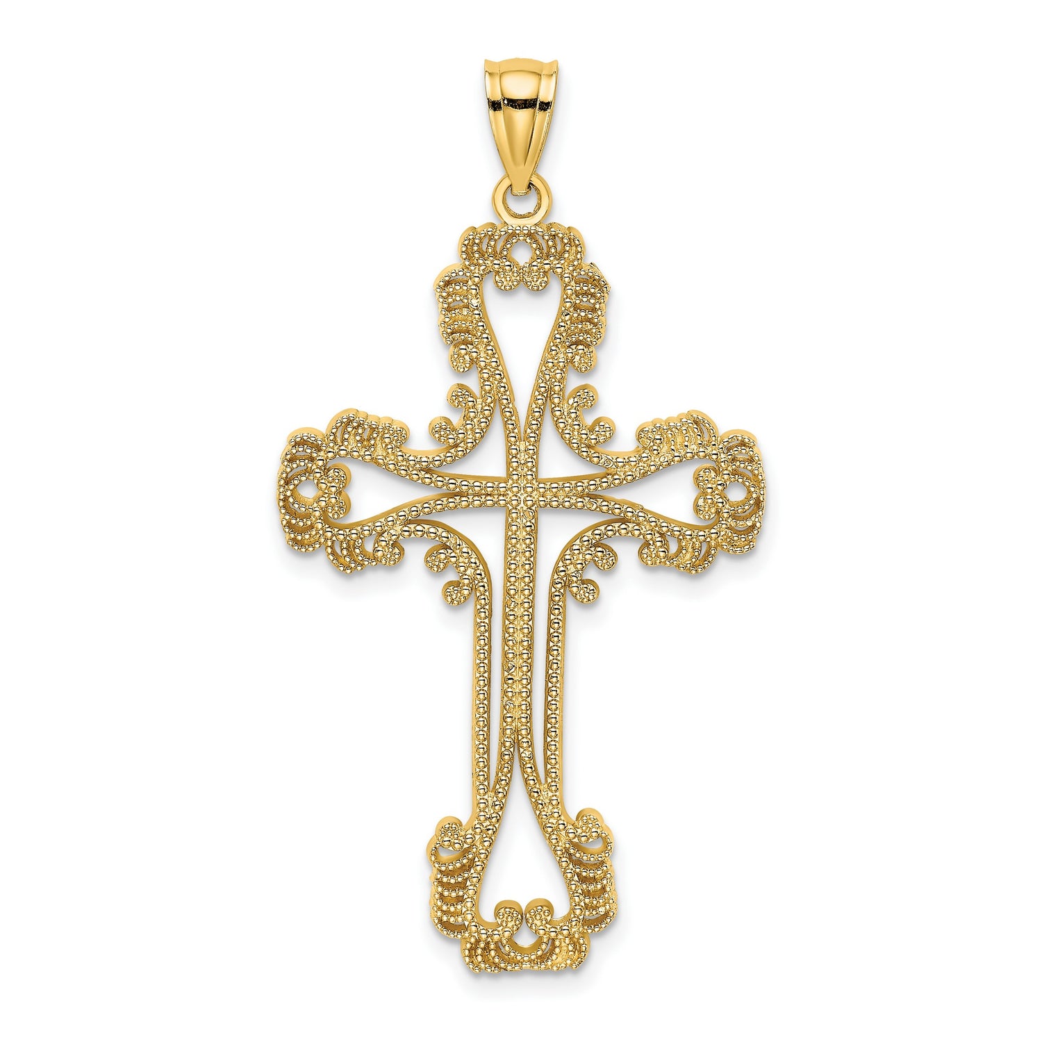 - Exquisite Design: This charm pendant features a beautifully intricate beaded cut-out cross with an elegant swirled design that stands out with its unique craftsmanship.