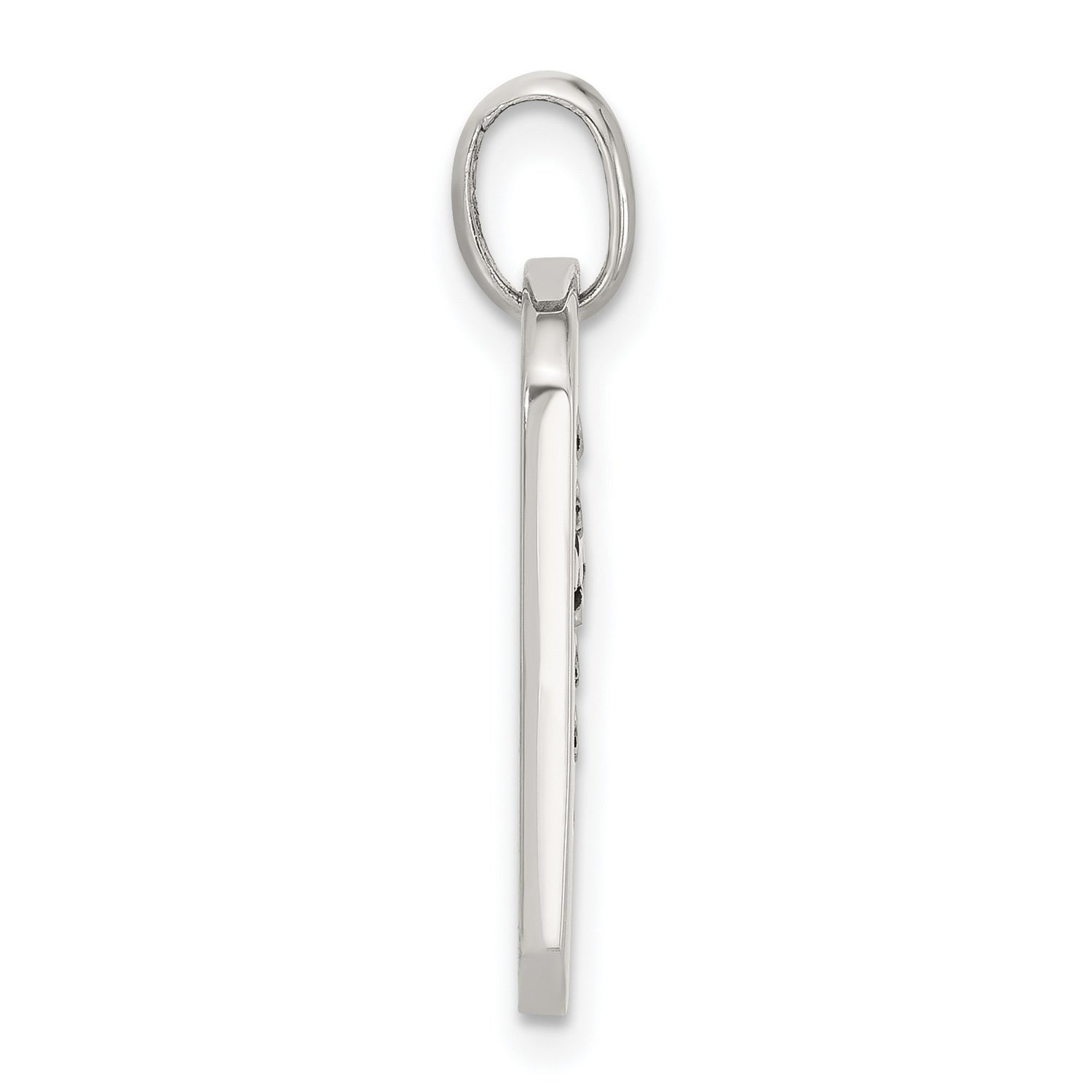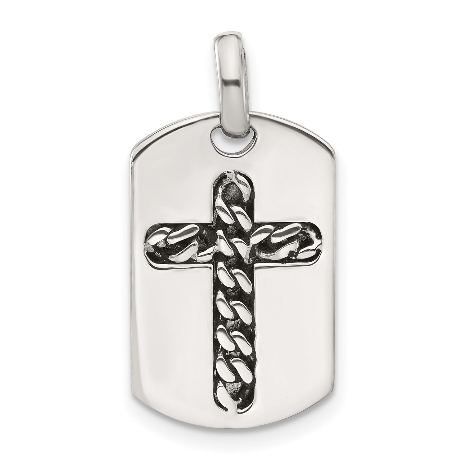 Sterling Silver Cross Pendant Dog Tag with Curb Chain Inlay and Textured Design