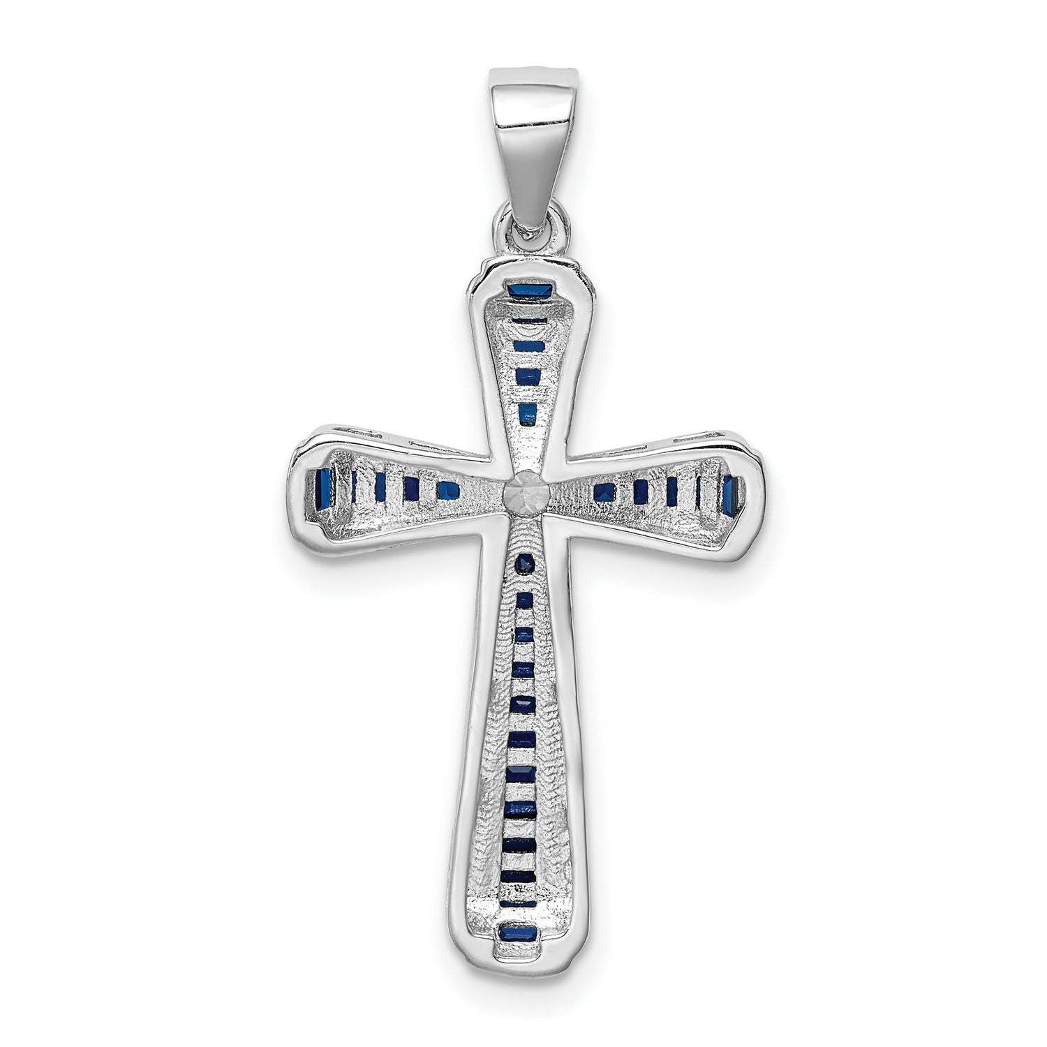 Sterling Silver Cross Pendant with Blue Spinel and Cubic Zirconia Center, Unisex Religious Style