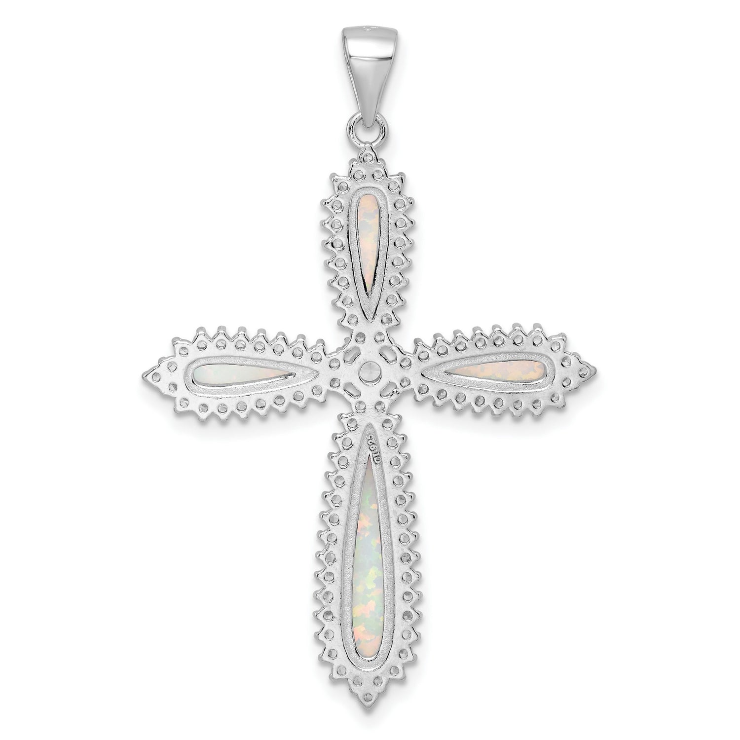 This White Created Opal CZ Border Cross Charm Pendant appeals to those who appreciate fine craftsmanship and elegance. The combination of classic design elements with the modern allure of created opal makes this piece both meaningful and fashionable.
