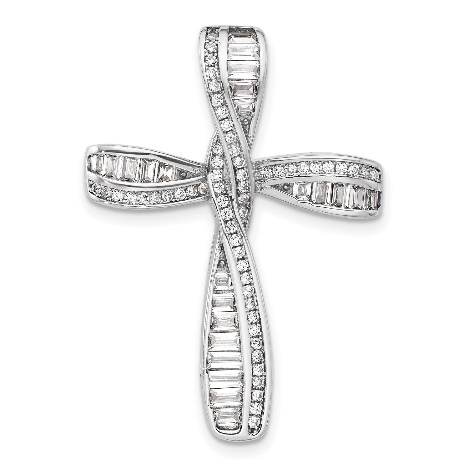Sterling Silver Cross Pendant with Cubic Zirconia Baguette and Round Channel Set Design