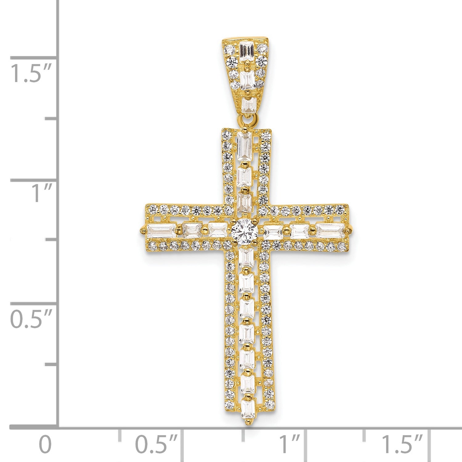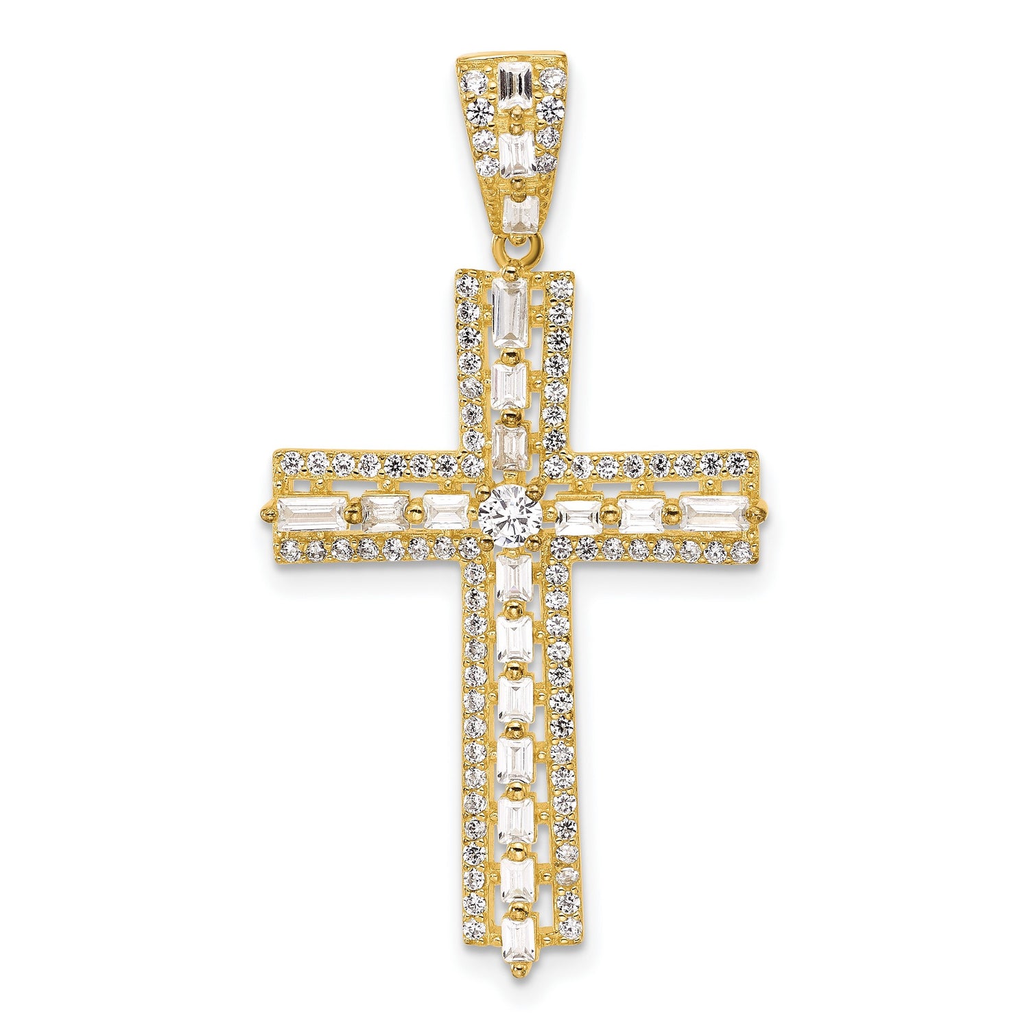 Sterling Silver Cross Pendant with Cubic Zirconia, Baguette Stones, Faith Design