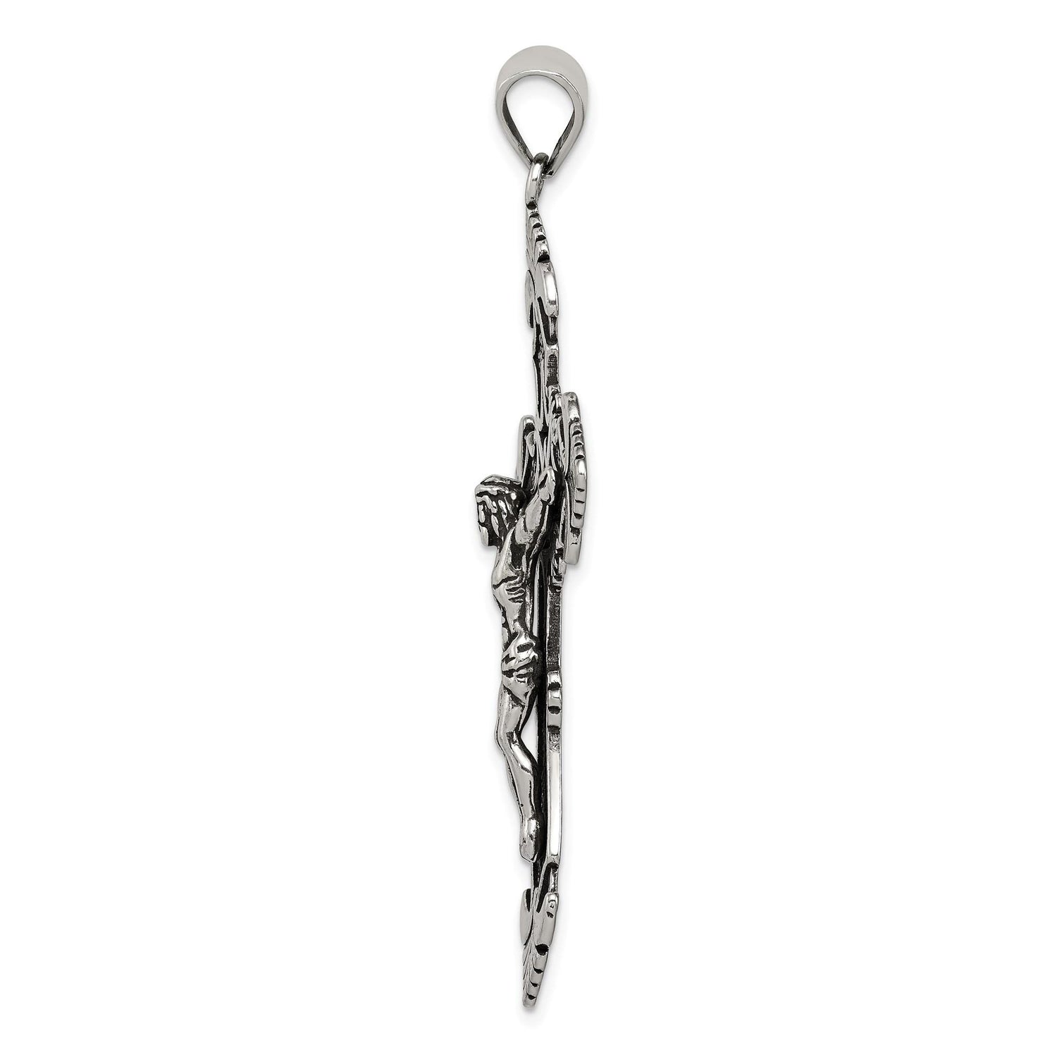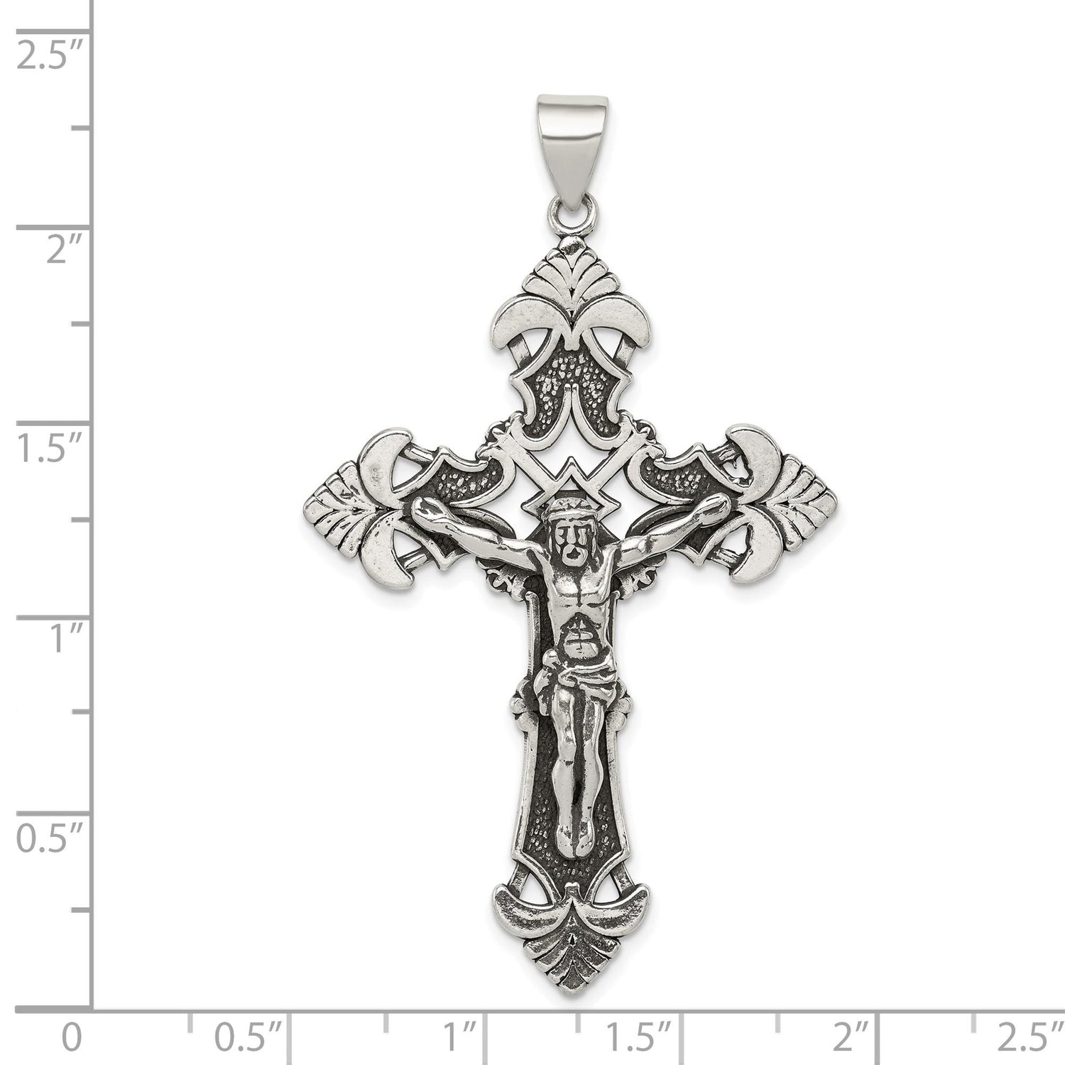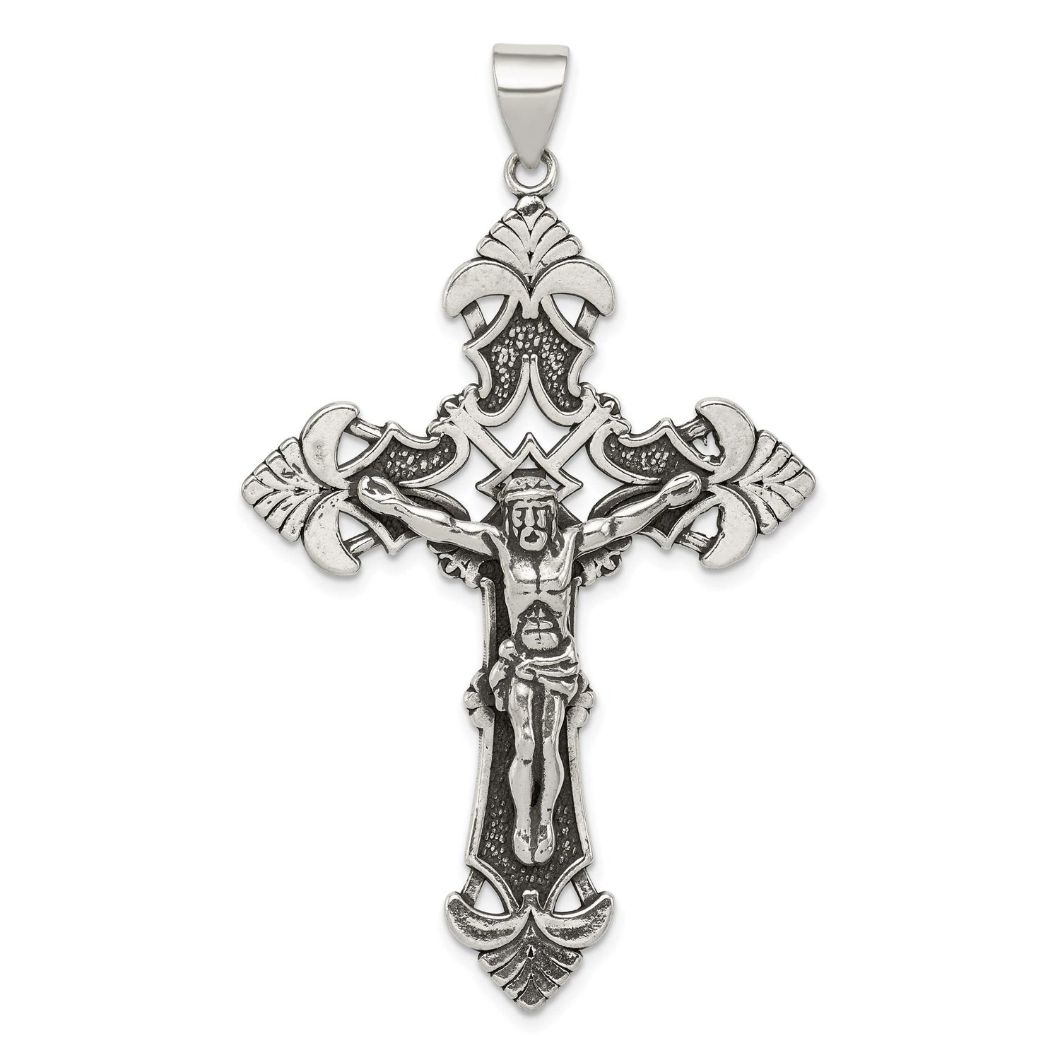 Sterling Silver Crucifix Cross Pendant with Detailed Jesus Figure and Fleur-de-Lis Design