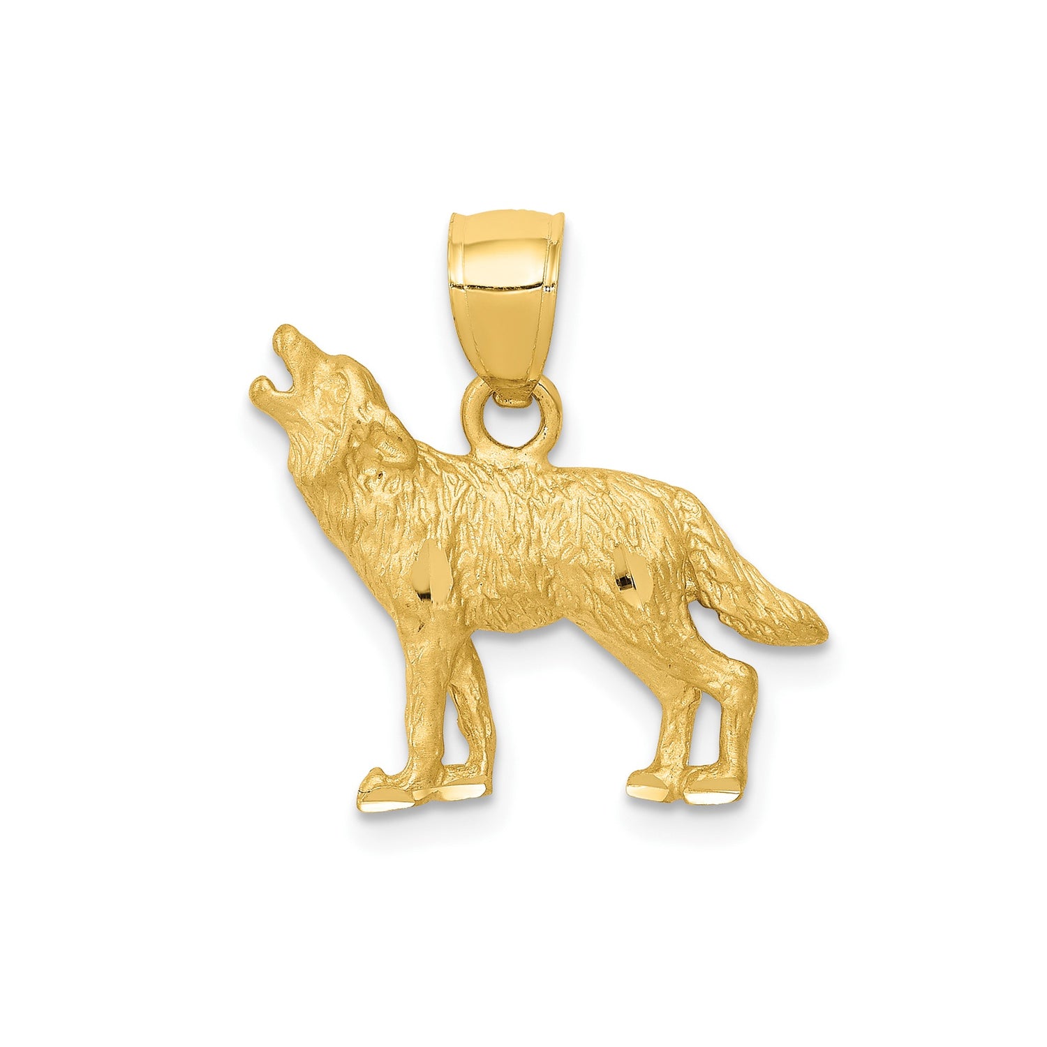 14k Yellow Gold Howling Wolf Pendant, Textured Wilderness Theme for Men or Unisex Wear