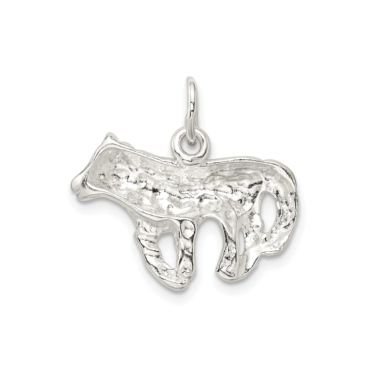 Sterling Silver Cow Charm Pendant with Realistic Grazing Cow Design, Farming Jewelry