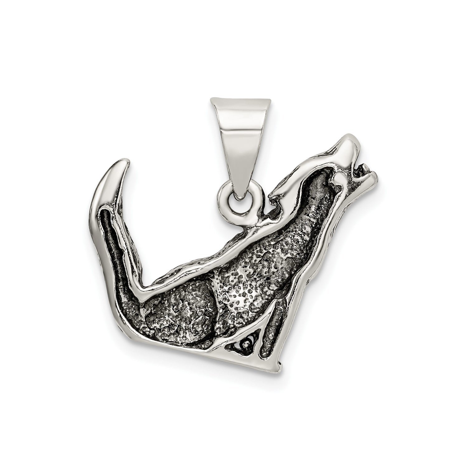 Sterling Silver Howling Wolf Pendant with Realistic Fur Detail, Tribal Animal Totem Jewelry