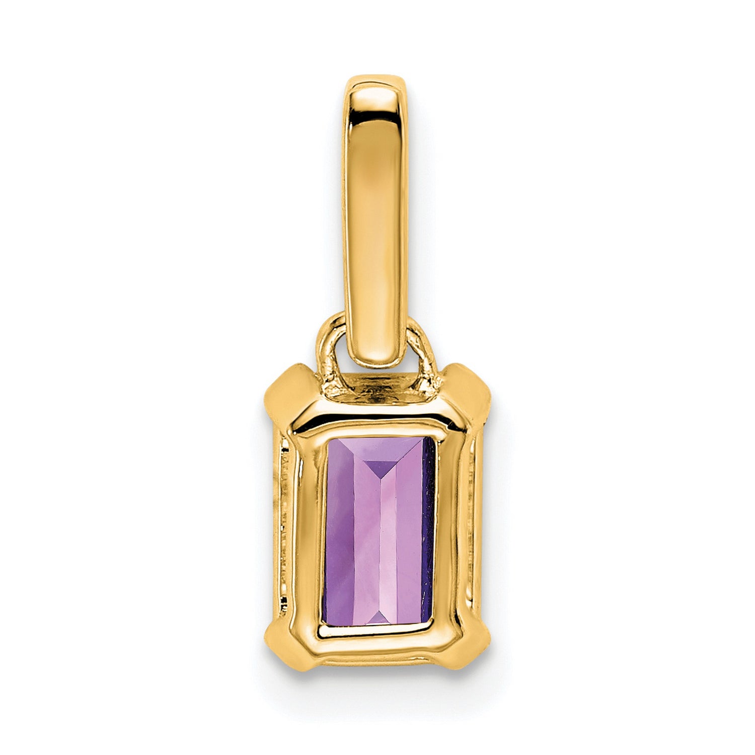 10k Yellow Gold Pendant with Emerald Cut Amethyst and Diamond Accent Bail