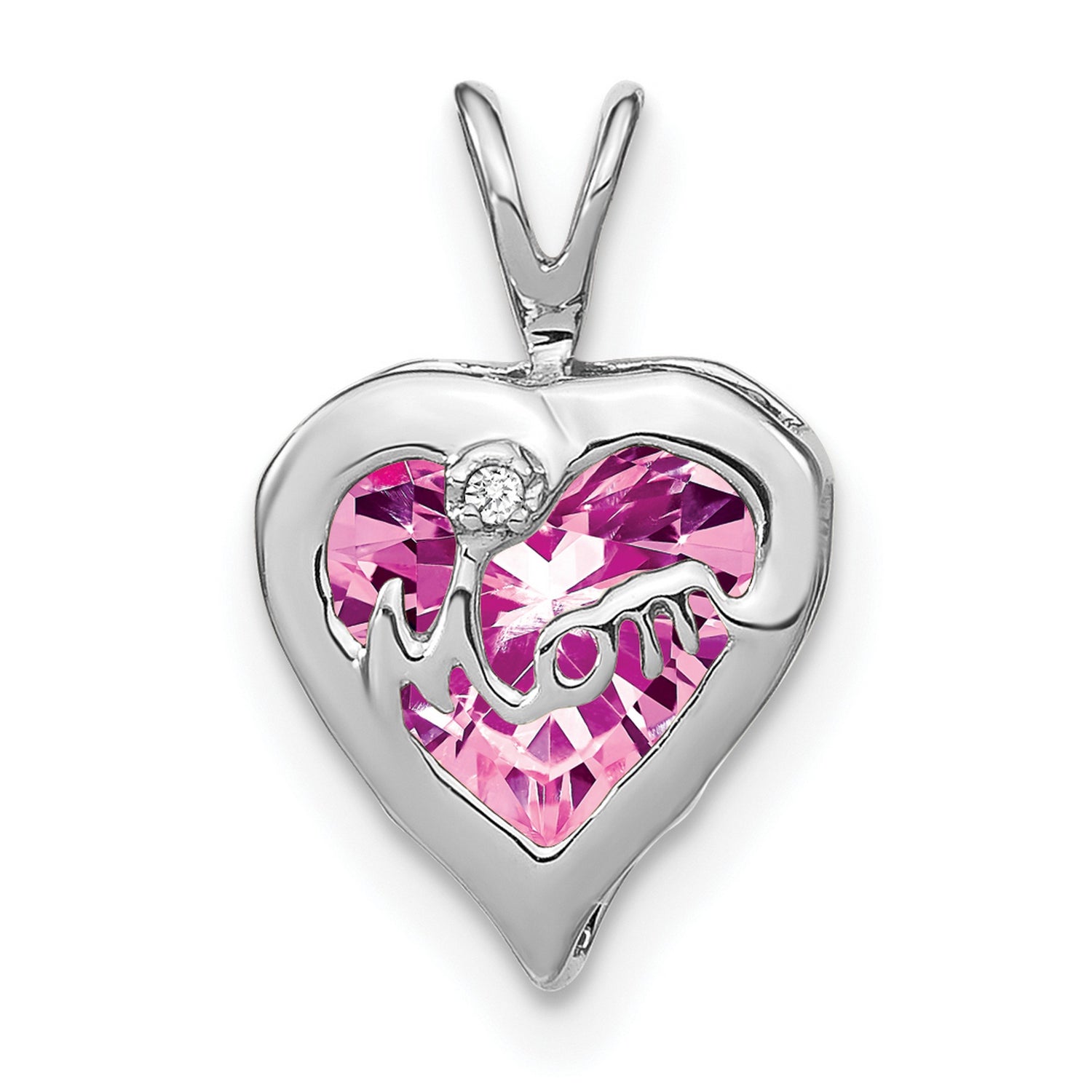 Embrace the elegance of our Created Pink Sapphire Diamond MOM Heart Charm Pendant and make every moment memorable. Order now and let this beautiful piece of jewelry express your love and appreciation in the most charming way.
