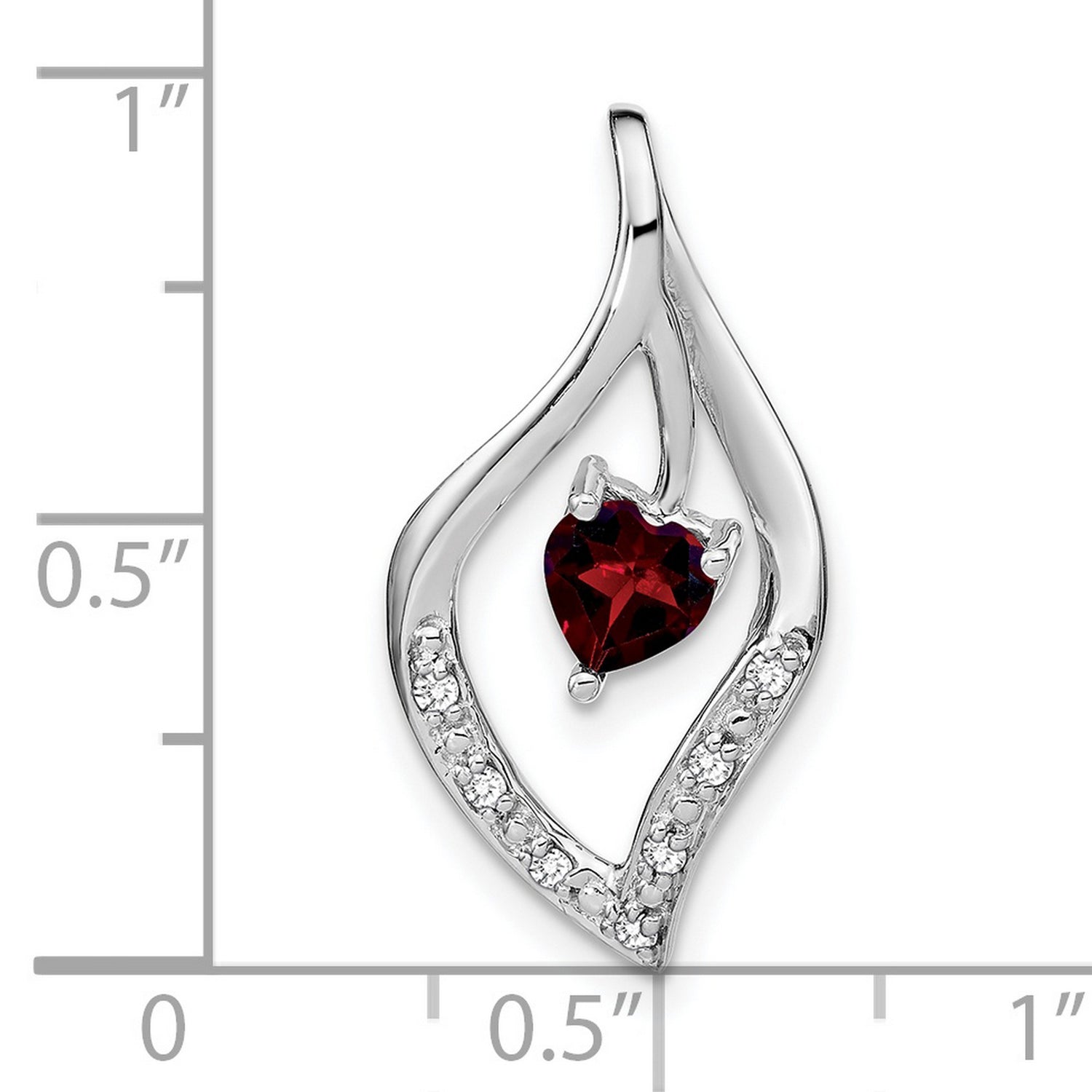 14k White Gold Heart Pendant with Red Garnet and Diamond Accents, Flame Design