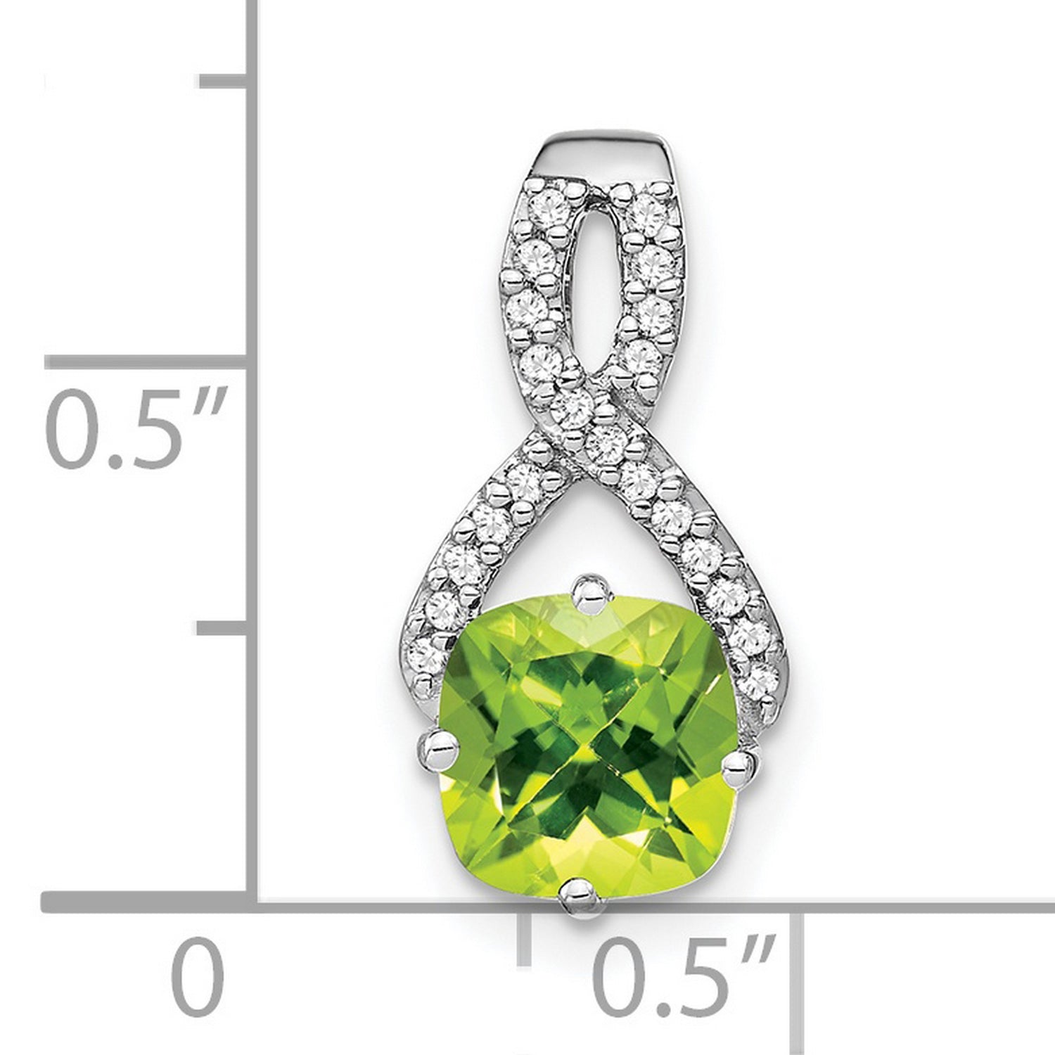 14k White Gold Infinity Pendant with Cushion Cut Peridot and Diamond Accents