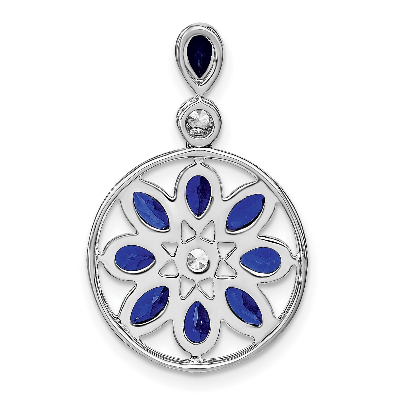 14k White Gold Mandala Pendant with Pear Shaped Sapphires, Floral Symmetry Design