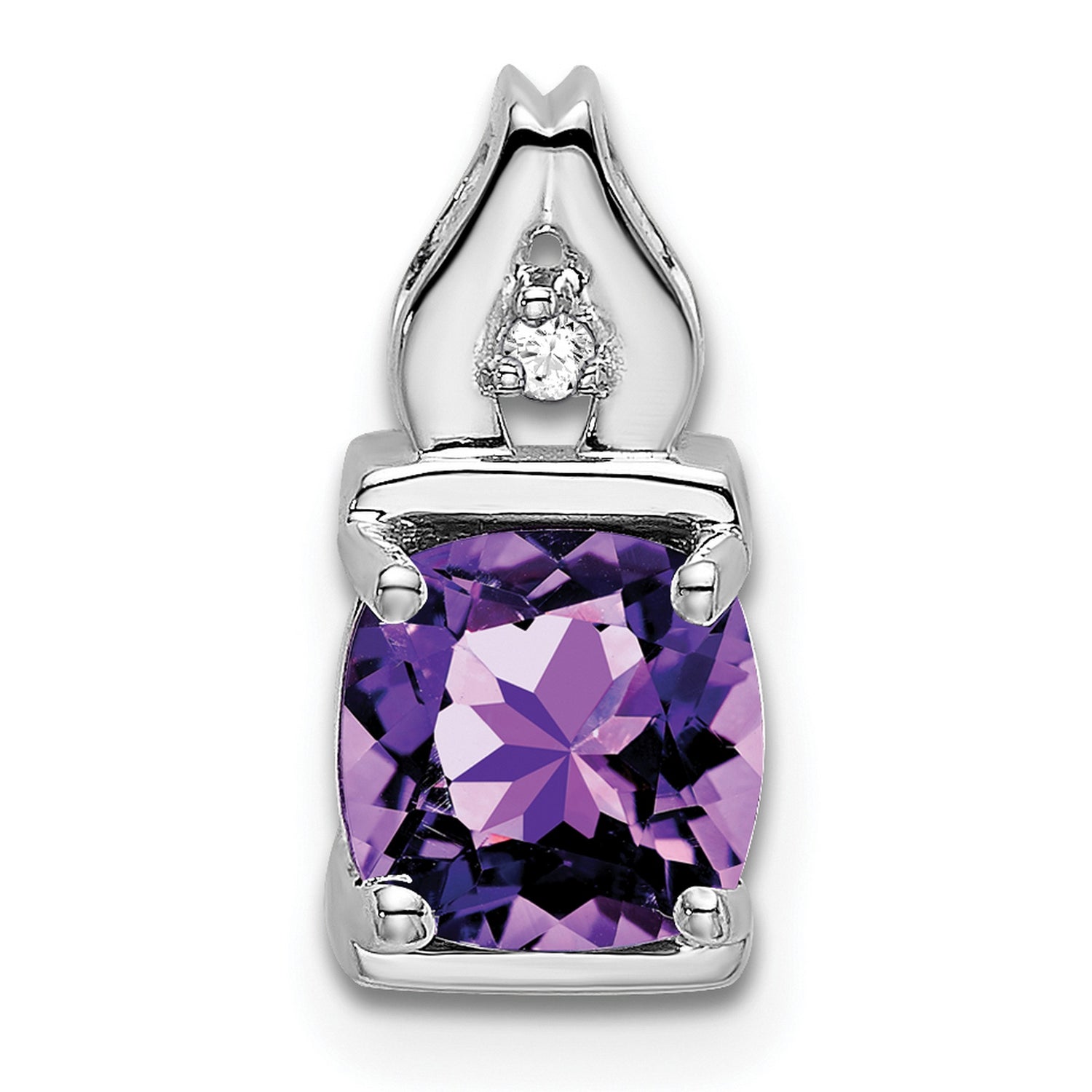 14k White Gold Pendant with Amethyst and Diamond Accent, Flame Bail Design