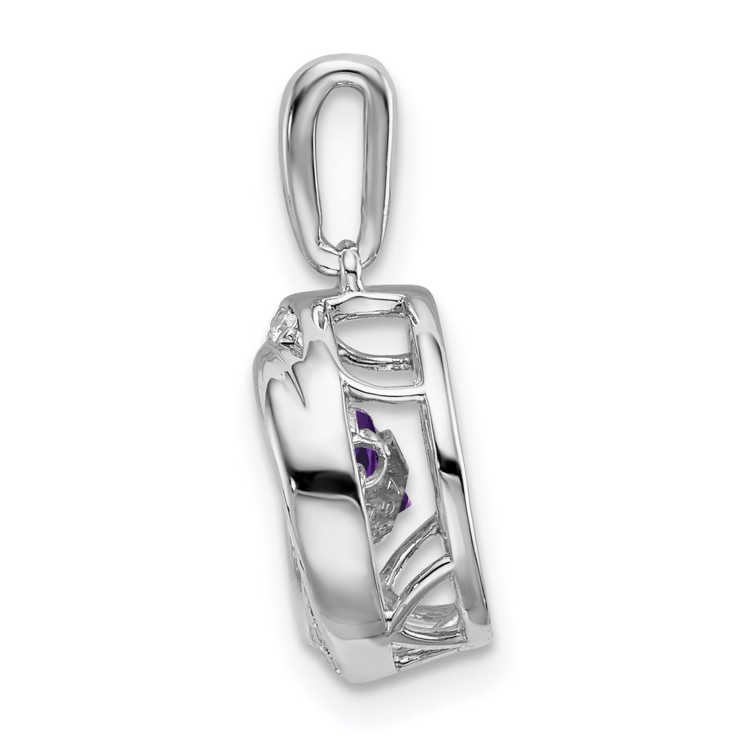14k White Gold Pendant with Amethyst Center and Diamond Accents, Swirl Design for Women